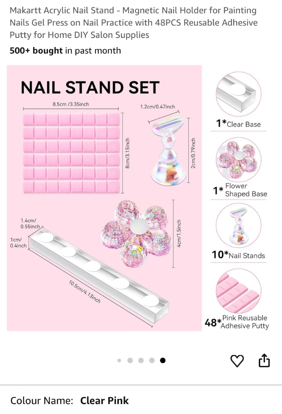 This Makartt acrylic nail stand is perfect for painting nails or practicing nail art! It features a magnetic nail holder and comes with reusable adhesive putty. The stand is clear pink and designed to be strong and stable. It also has a bottom protective film for scratch resistance BRAND NEW IN BOX Pick up Richmond Hill