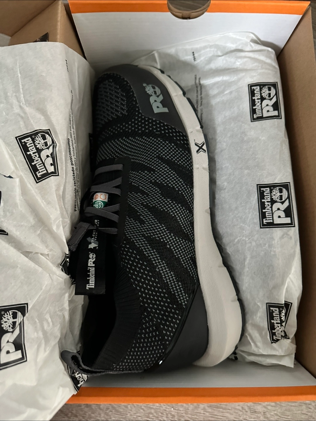 Selling a brand new pair of Men's Timberland PRO® Radius Knit Comp-Toe Slip-On Work Sneaker still in the original box! These are a stylish and comfortable choice for work or everyday wear. The box is included, so you'll get the full original experience. Great for anyone needing reliable footwear! US8