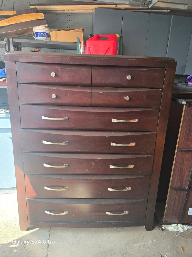 Vintage Wood Bedroom Set - Dresser, Mirror, Headboard, Armoire