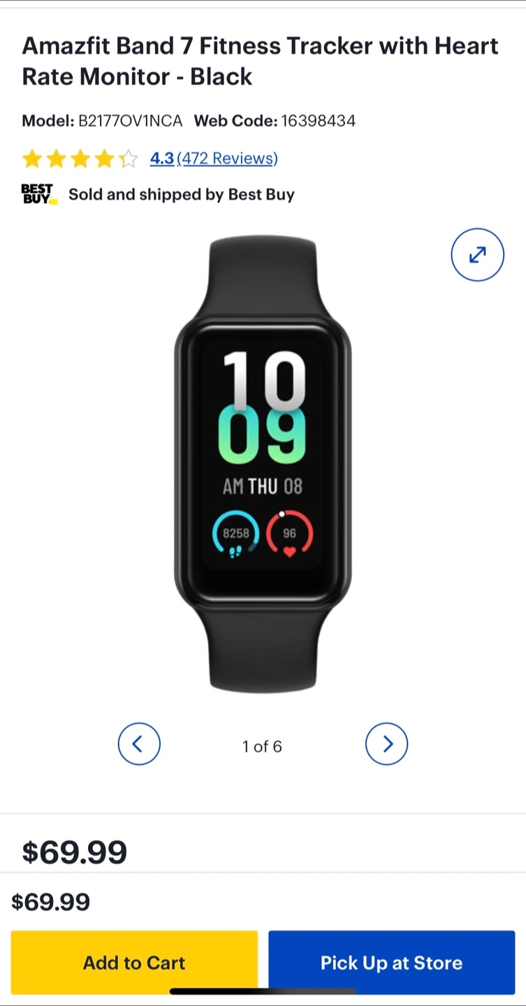 Selling an Amazfit Band 7 fitness tracker in black! Bought it for 69.99+tax now sell it for 35 only. Used only for a week.