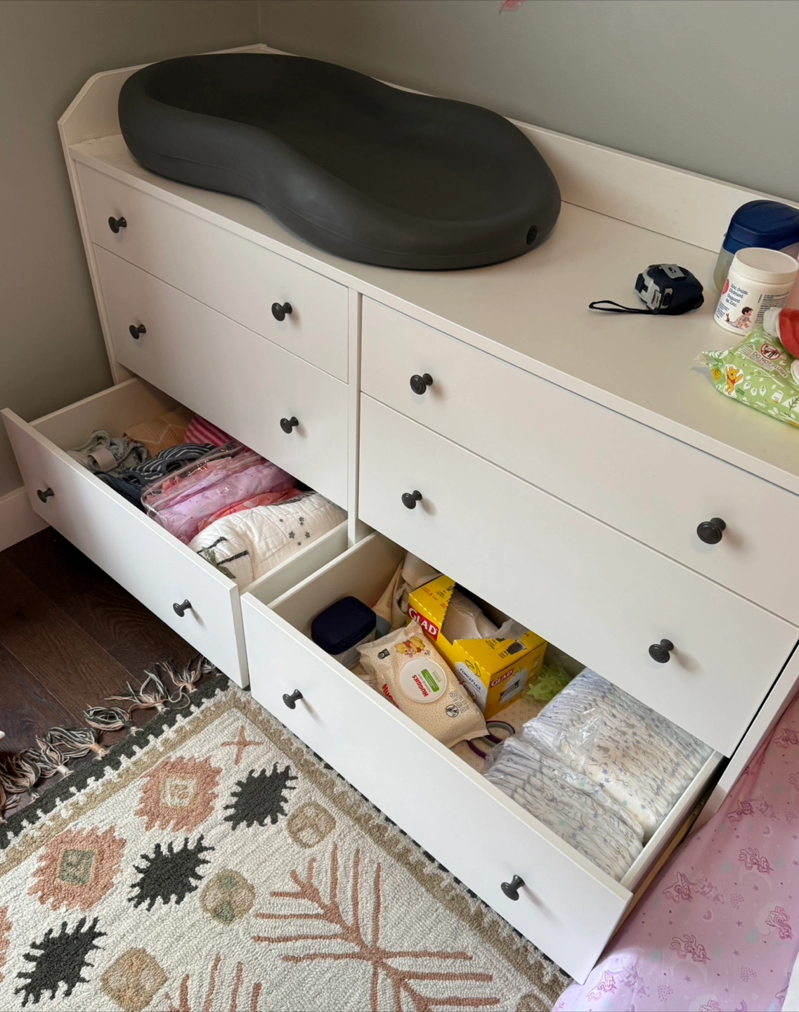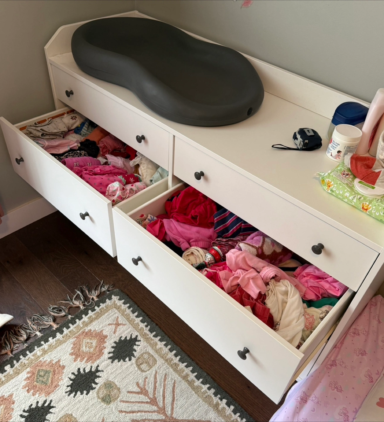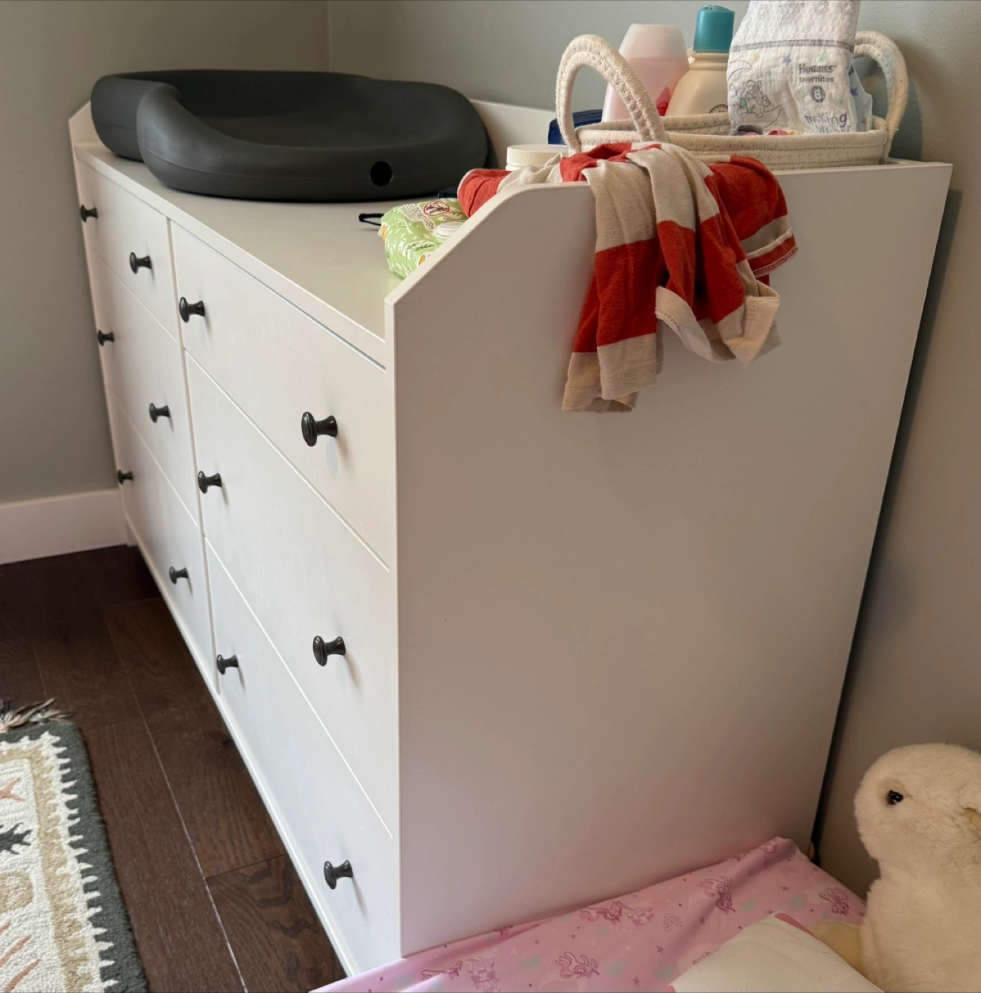Pick up only near Woodmount and Cosburn. Must have own transportation and one of us can help carry downstairs and out to front porch. Cash preferred. Ikea Hauga 6 drawer dresser, good condition. Purchased in 2021 for $220 and discontinued on Canadian Ikea, so product photos are from Ikea UK. Please check photos for dimensions. Please note: - Top corner has some visible wear and we repaired it, so functions fine - Drawer contents are not included and only to show carrying capacity and how we used it