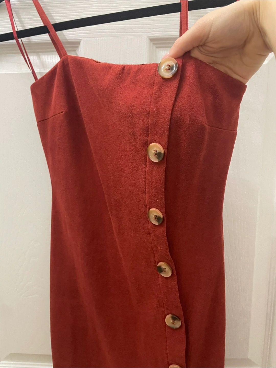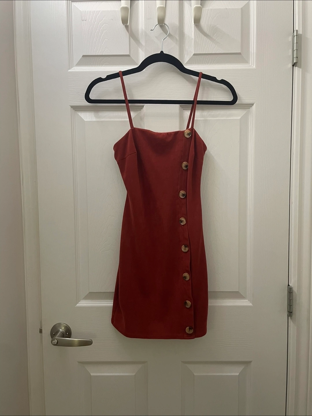 Super cute dress for the summer! Is in perfect condition and only lightly worn, mainly wore it on vacation. Originally got it from a local boutique in Vancouver. Size Small but definitely fits more like an XS! Has a zipper at the back and an extra lining layer inside, is really comfy and soft!