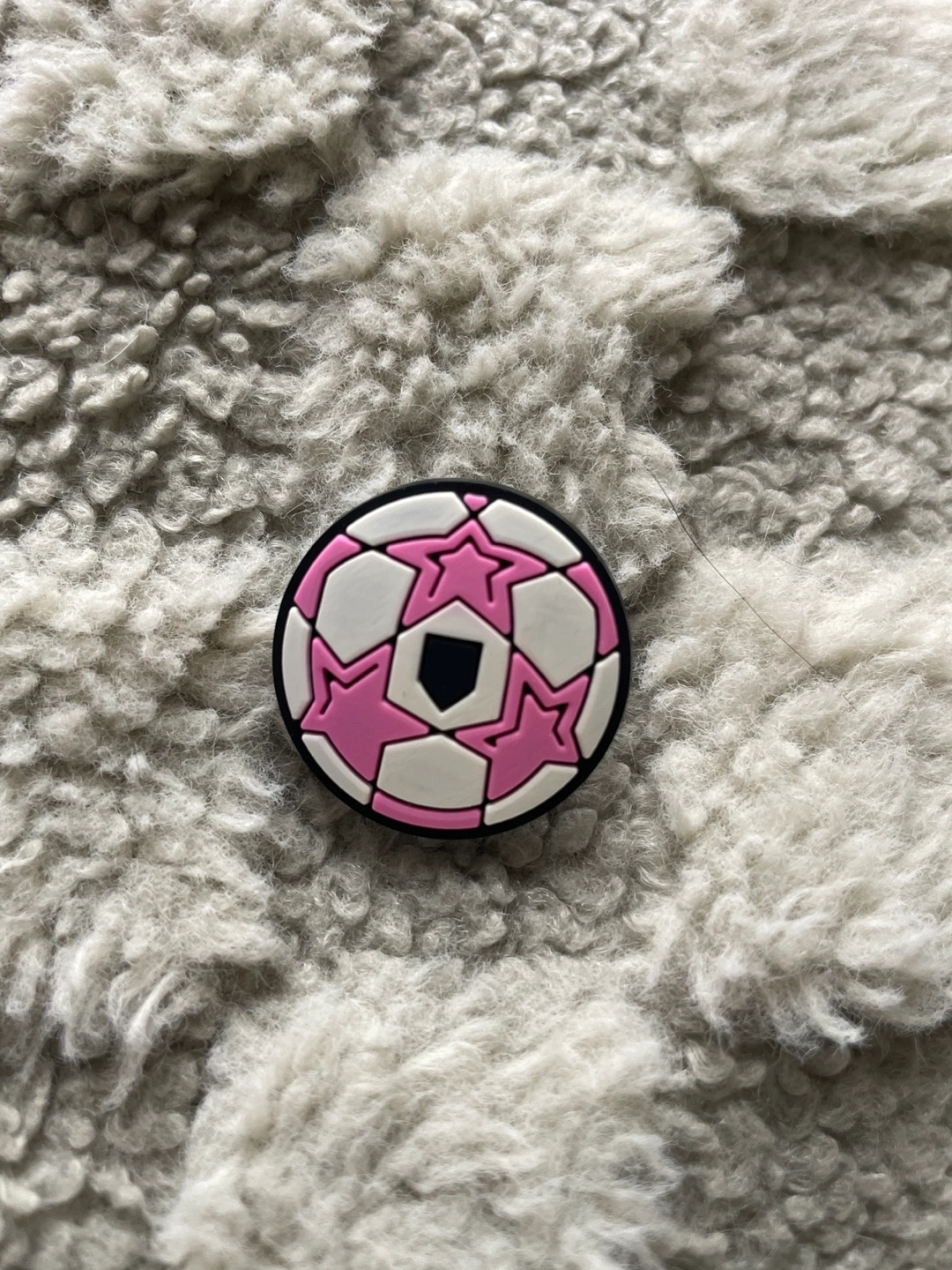 Cute pink and white soccer ball shoe charm! Perfect for adding a bit of fun to your footwear. Preference for quickest pick up.
