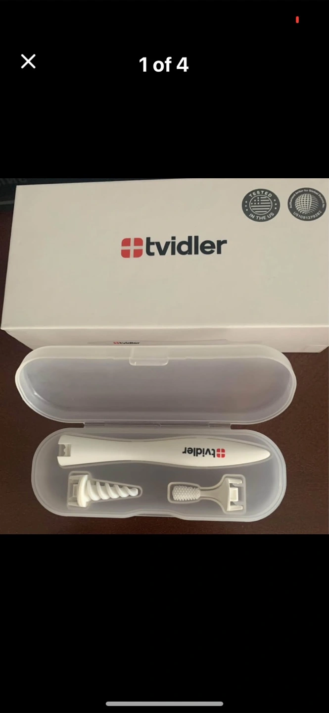 Selling a Tvidler ear wax remover tool. It comes with two specialized heads that allow you to effectively remove ear wax. The handle includes a rubber spiral for a thorough cleanse. It's an environmentally friendly option for your ear cleaning needs, made with upgrade silicone, providing a soft gentle touch
