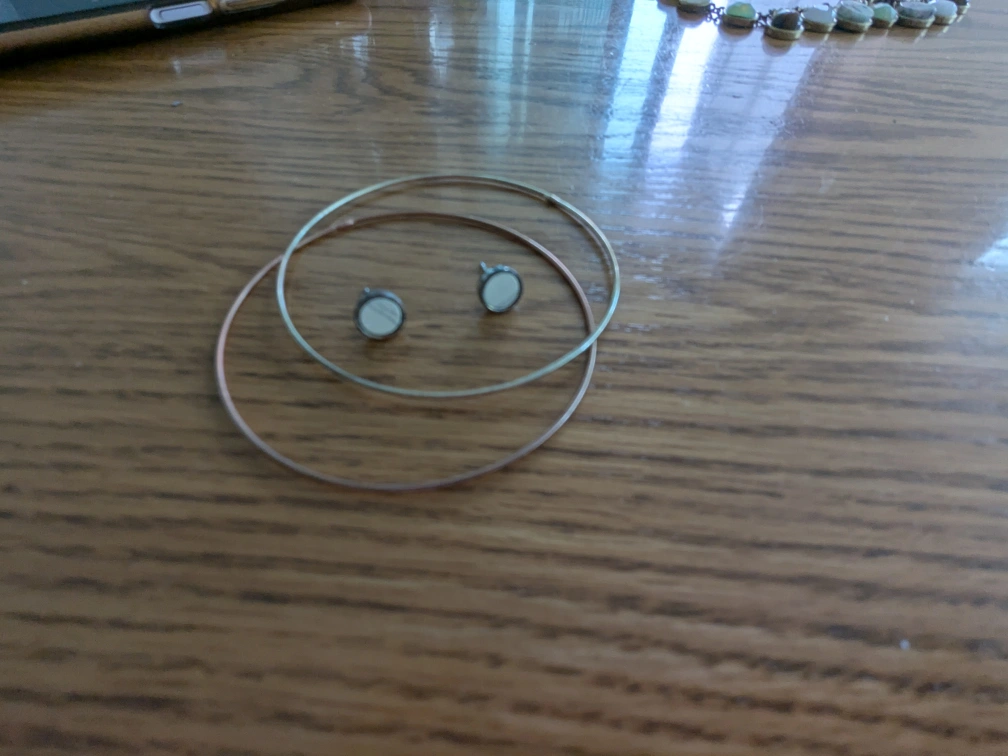 Selling a pair of earrings and two bangles.preowned. 3 for the whole set