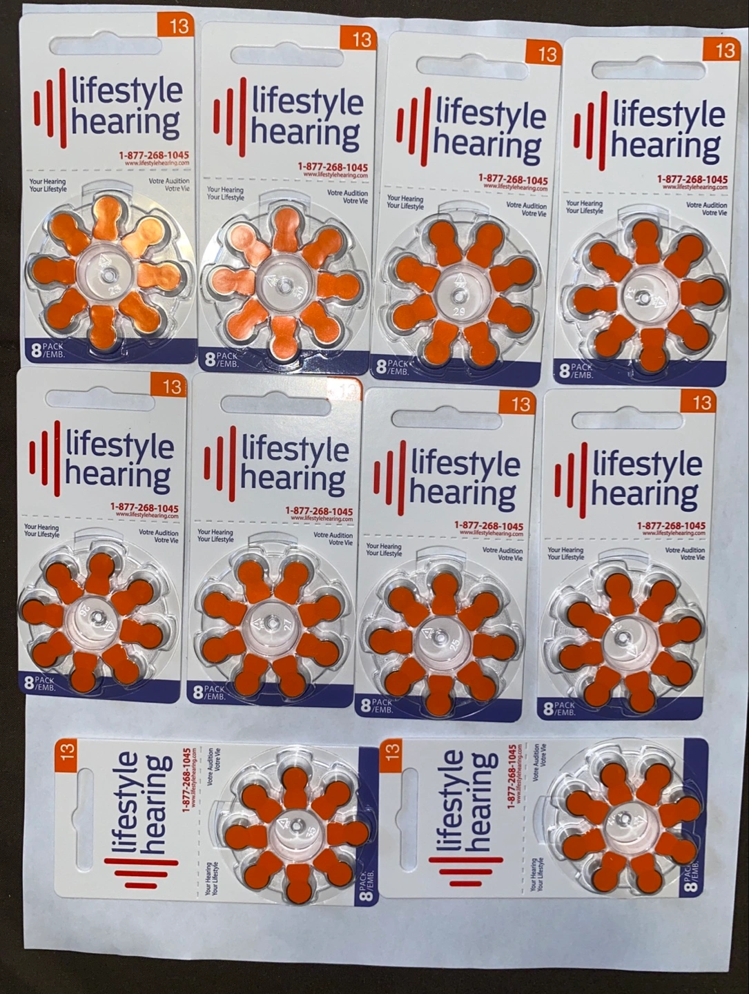 Selling a box of Lifestyle hearing aid batteries, size 13. Each box contains 80 batteries. Expiry date is 2026 April 18