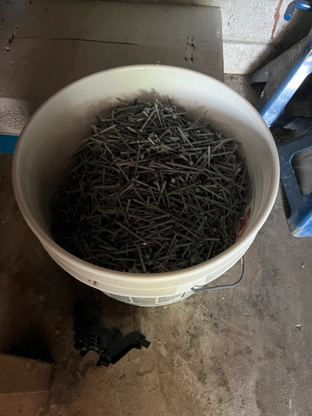 Selling a bucket of nails. Great for any construction or DIY projects you might have on the go!