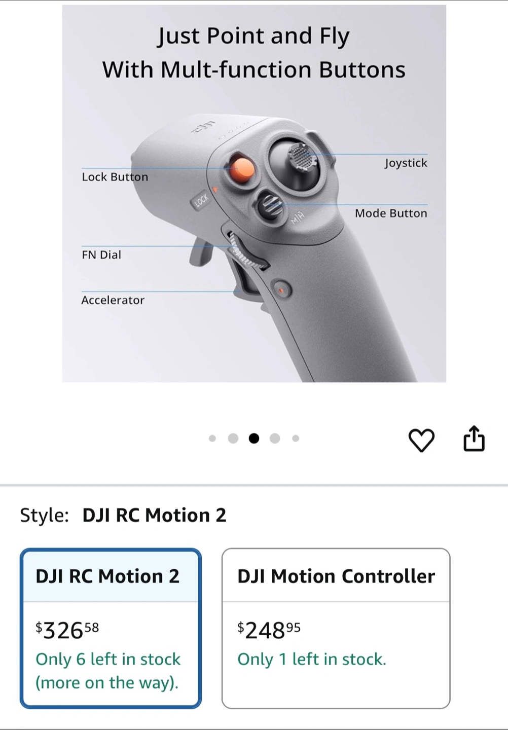 Selling a DJI RC Motion 2 controller! It allows for flexible, multidirectional drone operation. Features include takeoff, landing, and darting left and right. Just point and fly with its multi-function buttons! Retails for $325 new Works great - no issues Lakeshore and parklawn Ossington and queen (some days)