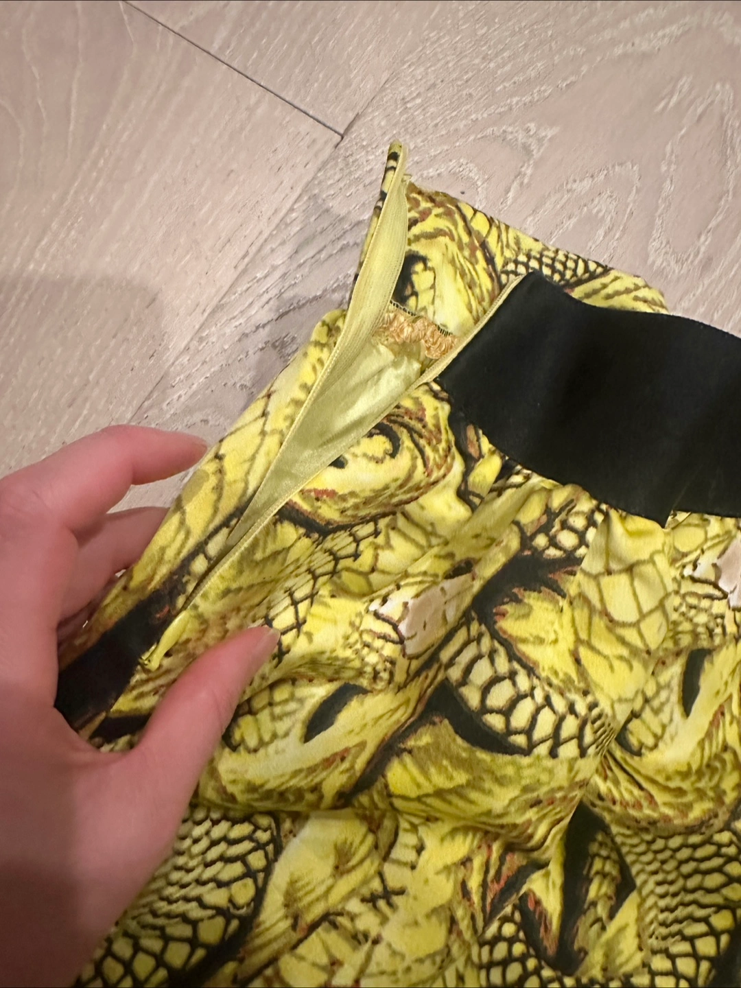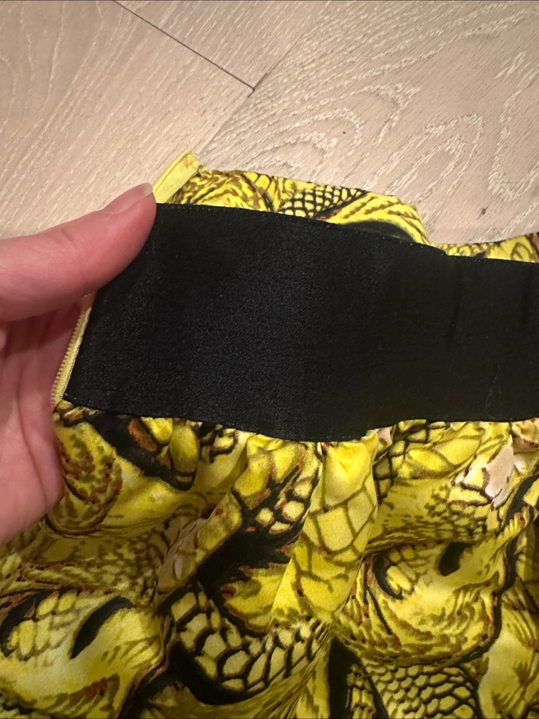 • Black elastic band at the back • Zipper closure • Waist (measured flat): 13”+ • Length: 15” • I’m 5’2” and 106lbs for reference • One size Pickup available at 10 Simpson Ave, Toronto