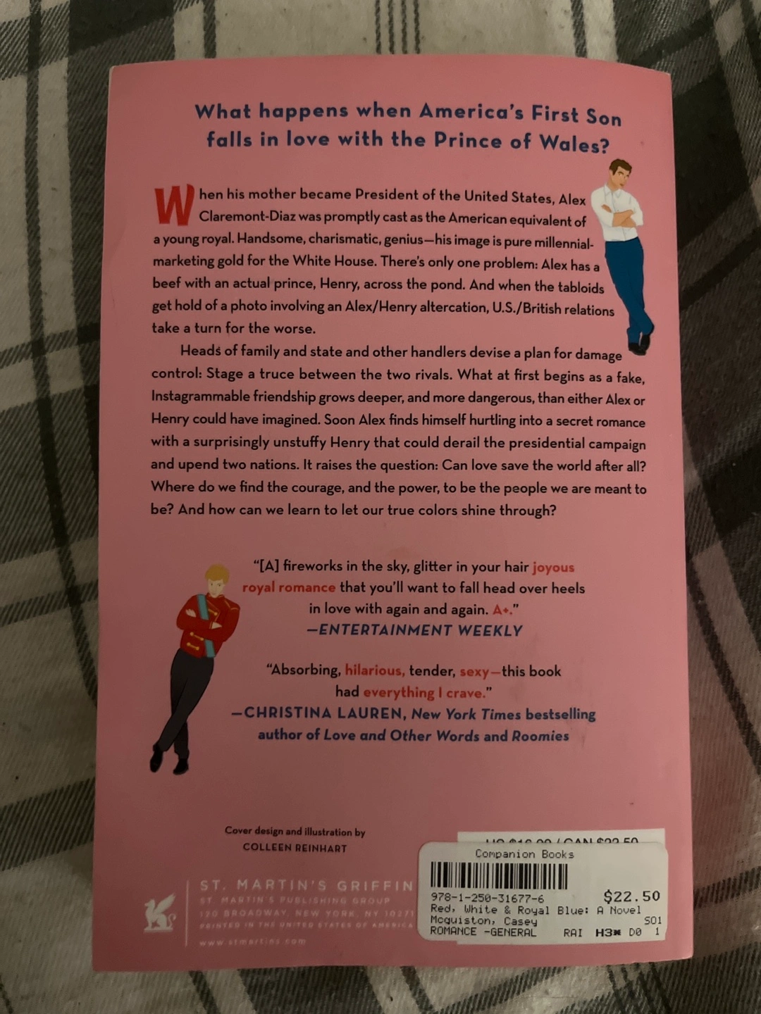 Selling a copy of Red, White & Royal Blue by Casey McQuiston! It's a New York Times Bestseller and a novel about love and other words. Perfect for a cozy read!