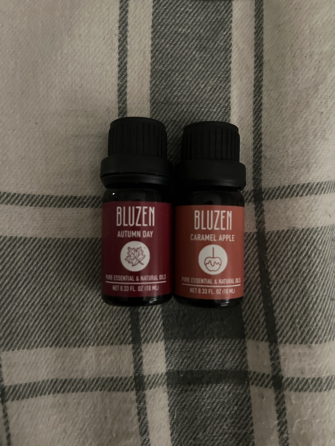 Selling two Bluzen essential oils: Autumn Day and Caramel Apple! They are both pure essential and natural oils, each 0.33 fl oz (10 ml). Add a few drops to your diffuser or carrier oil for a lovely scent. Each gently used.