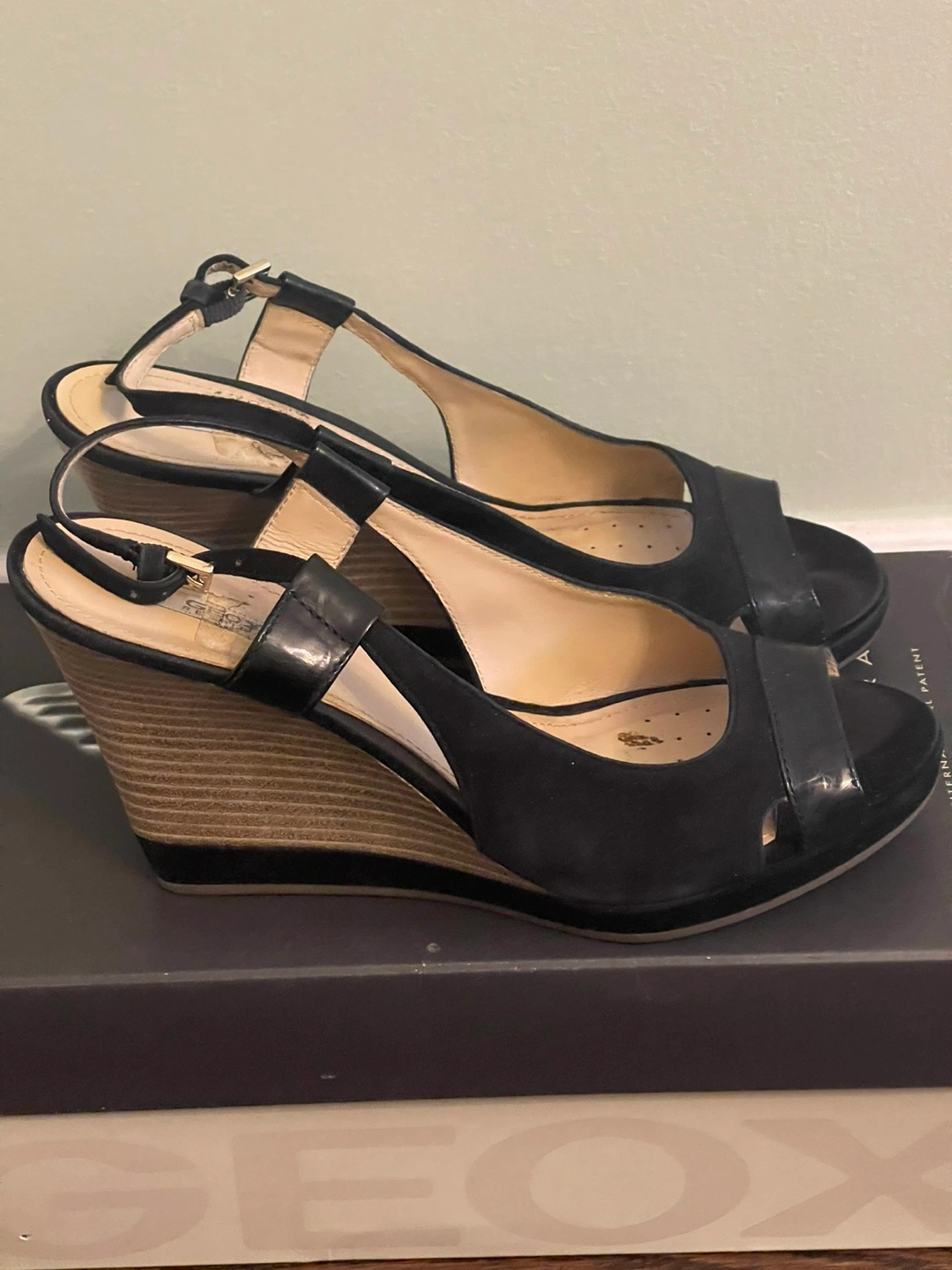 Geox ladies / women’s wedge sandals size 8 in leather / suede Excellent condition , just can’t wear heels anymore (check my other listings for more shoes ) Only $40 Pick up near Bathurst and Steeles