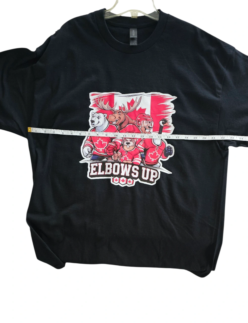 *** PICK-UP AT BROADVIEW & DANFORTH AREA *** I made this t-shirt! I also have it in white and grey. Wear it proudly on Canada Day or any day really! Everything (except for where this brand new Gildan shirt was made) is proudly made in Canada. Cute graphic of a hockey team featuring 5 well known Canadian animals: polar bear, brown bear, moose, goose, and the beaver. Graphic Designer is Canadian, Do Hao. Measurements, materials, and care instructions included in my photos.