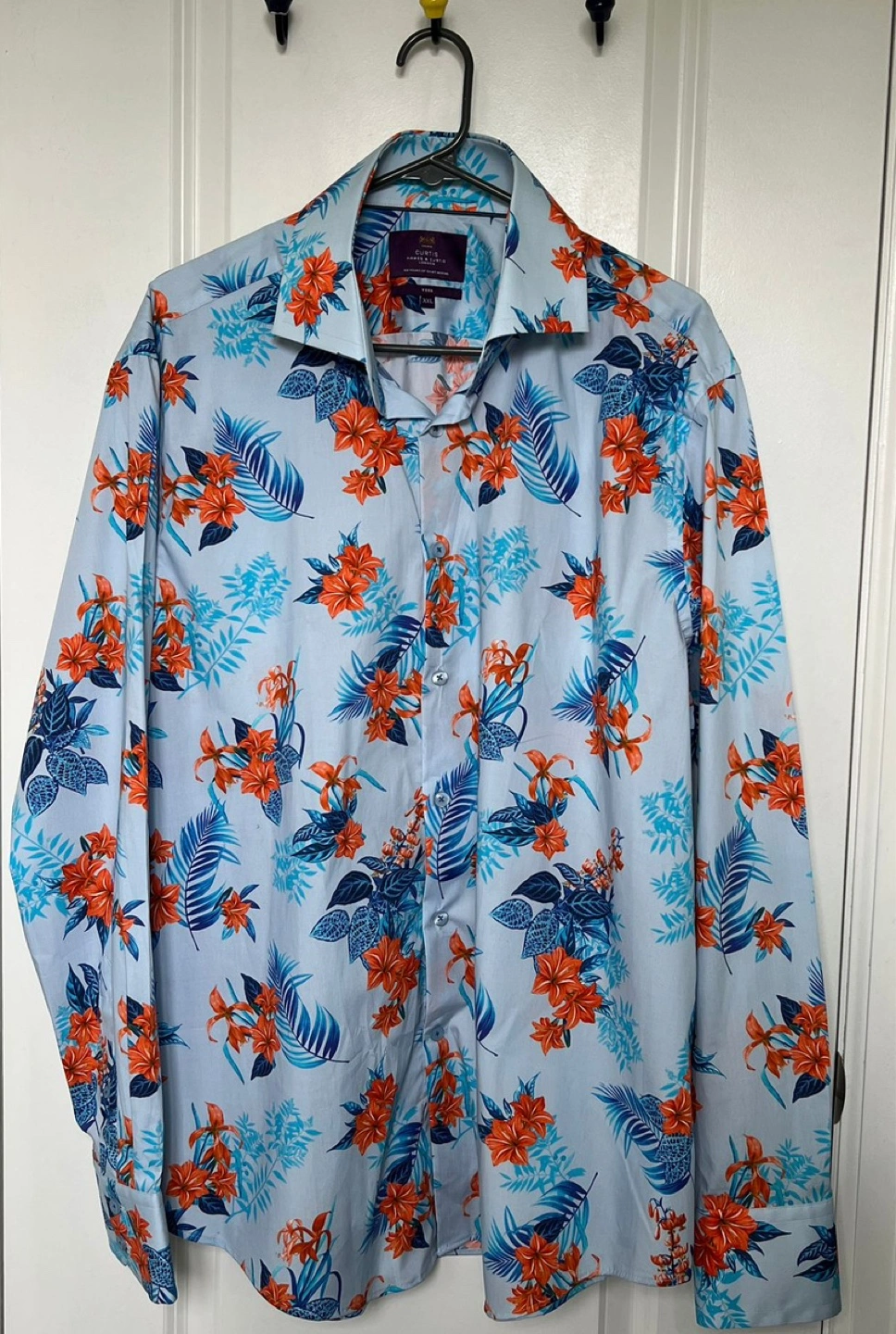 This is a Curtis Hawes & Curtis London shirt in size XXL. It features a vibrant floral pattern, perfect for adding a pop of colour to your wardrobe! The shirt is in new condition