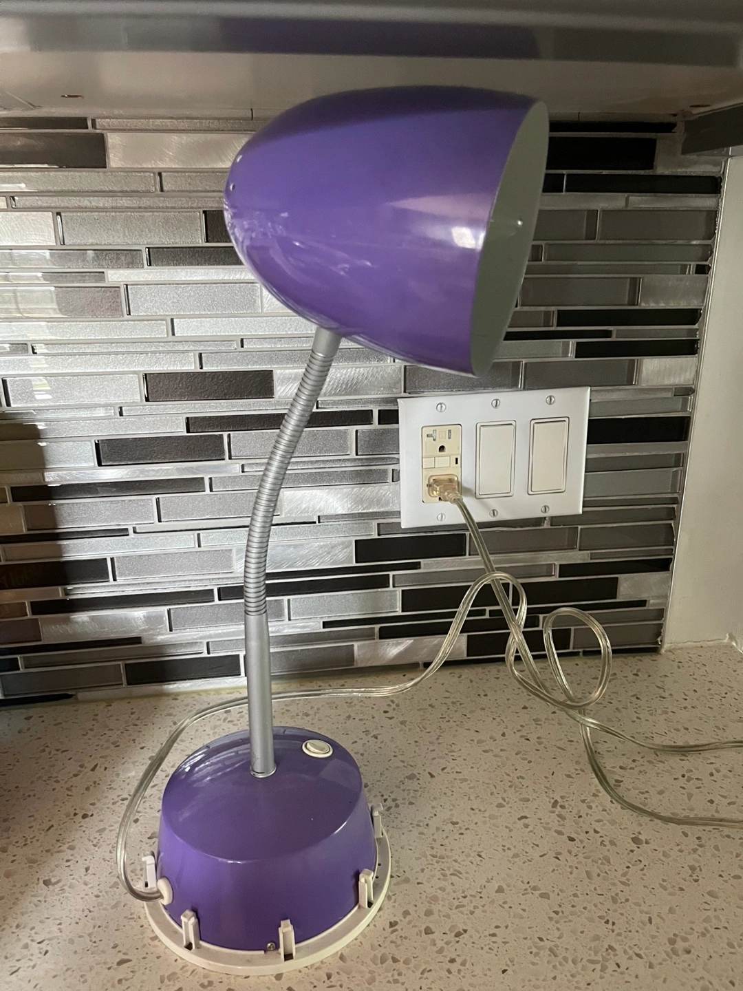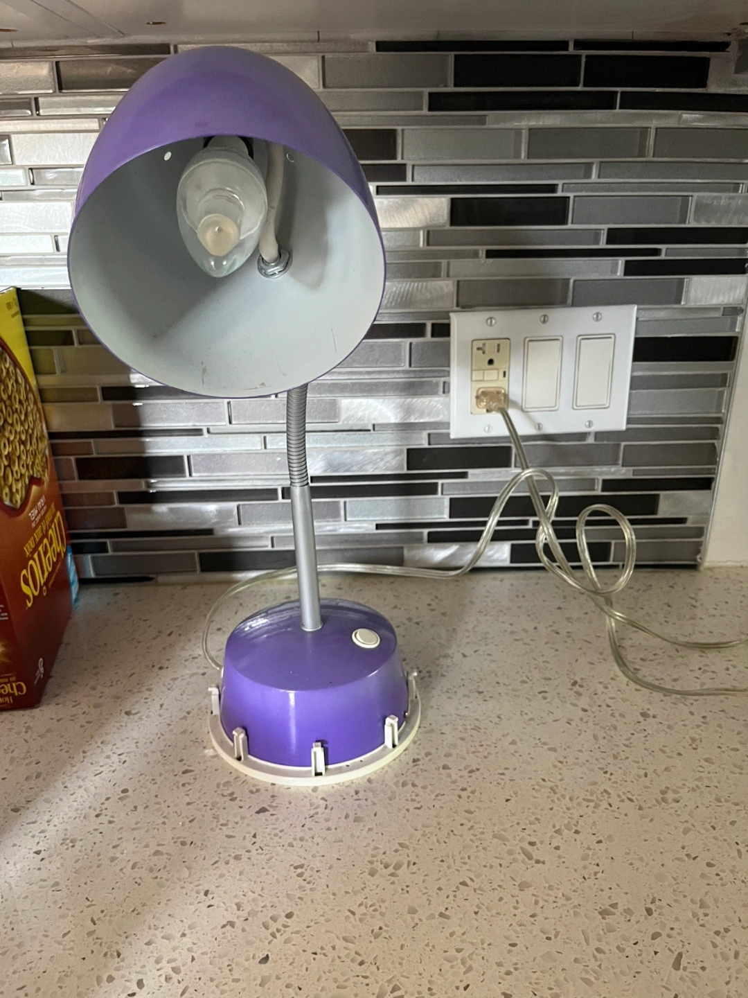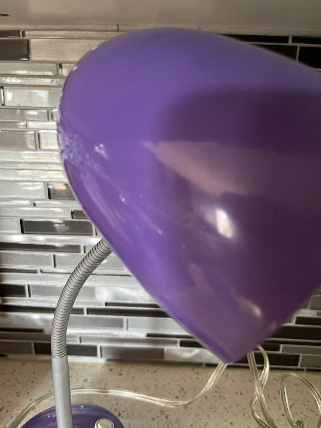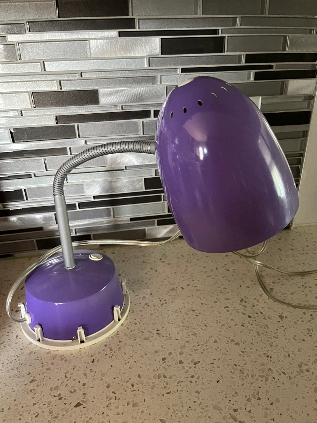 Selling a cute purple desk lamp! It's in good condition and would be perfect for a student's desk or a small workspace