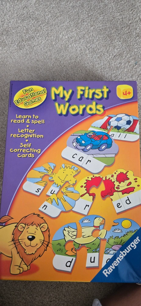 Fun educational game by Ravensburger, perfect for kids aged 4 and up! Learn to read and spell with letter recognition and self-correcting cards. The box is included!