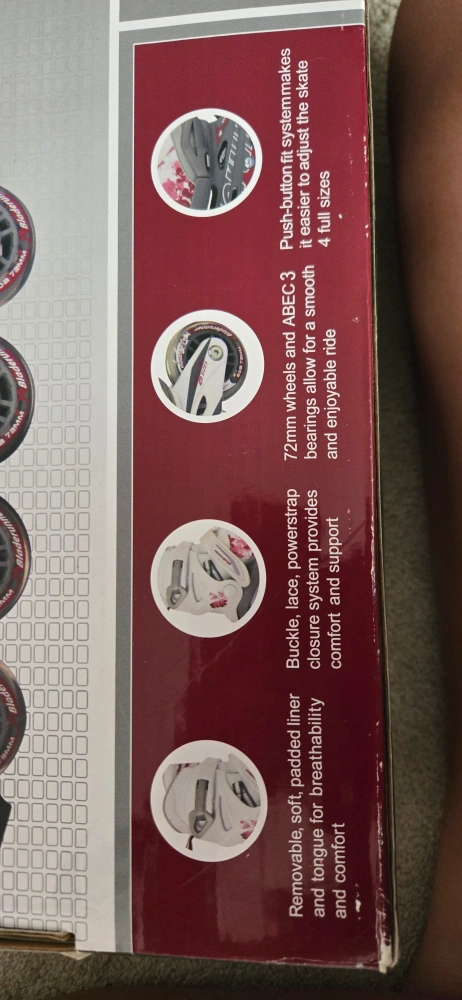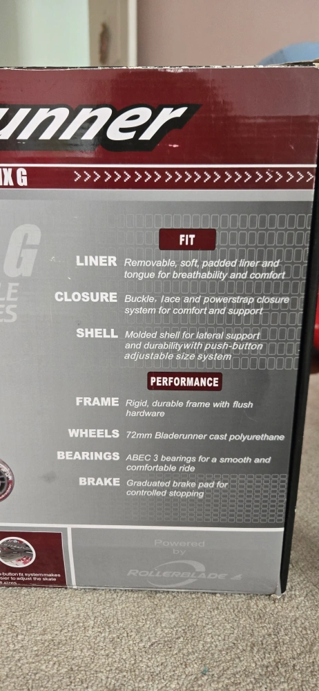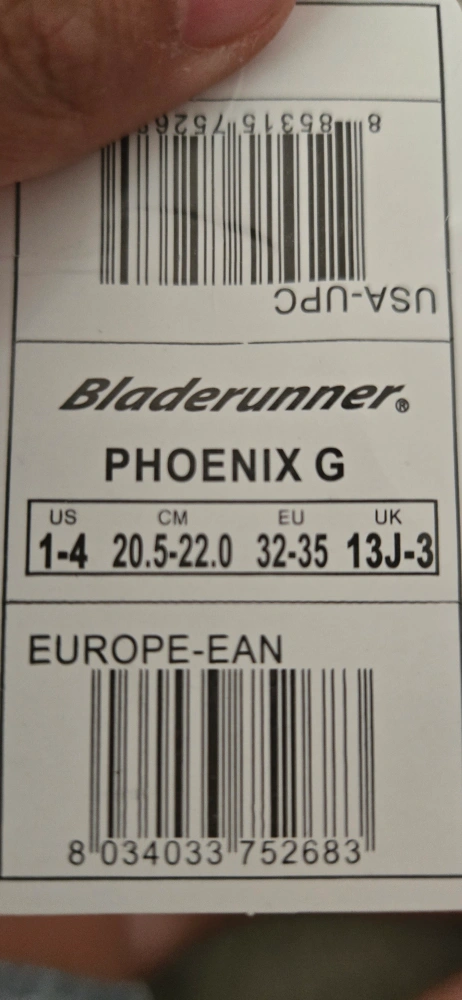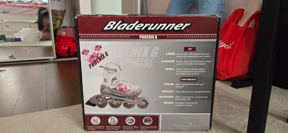 Selling a pair of Bladerunner Phoenix G adjustable inline skates! These skates are size US 1-4 (CM 20.5-22.0, EU 32-35, UK 13J-3). They feature a removable, soft padded liner and tongue for breathability and comfort. The buckle, lace, and powerstrap closure system provides comfort and support. The frame is rigid and durable with flush hardware. The 72mm wheels and ABEC 3 bearings make for a smooth and comfortable ride. The box and technical manual are included!