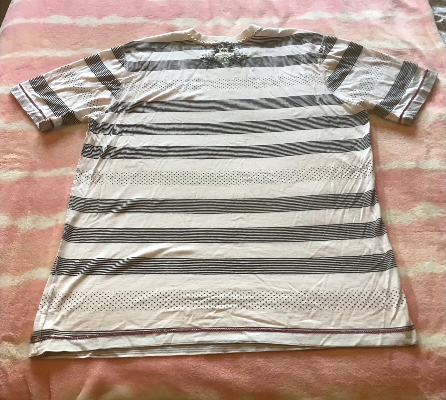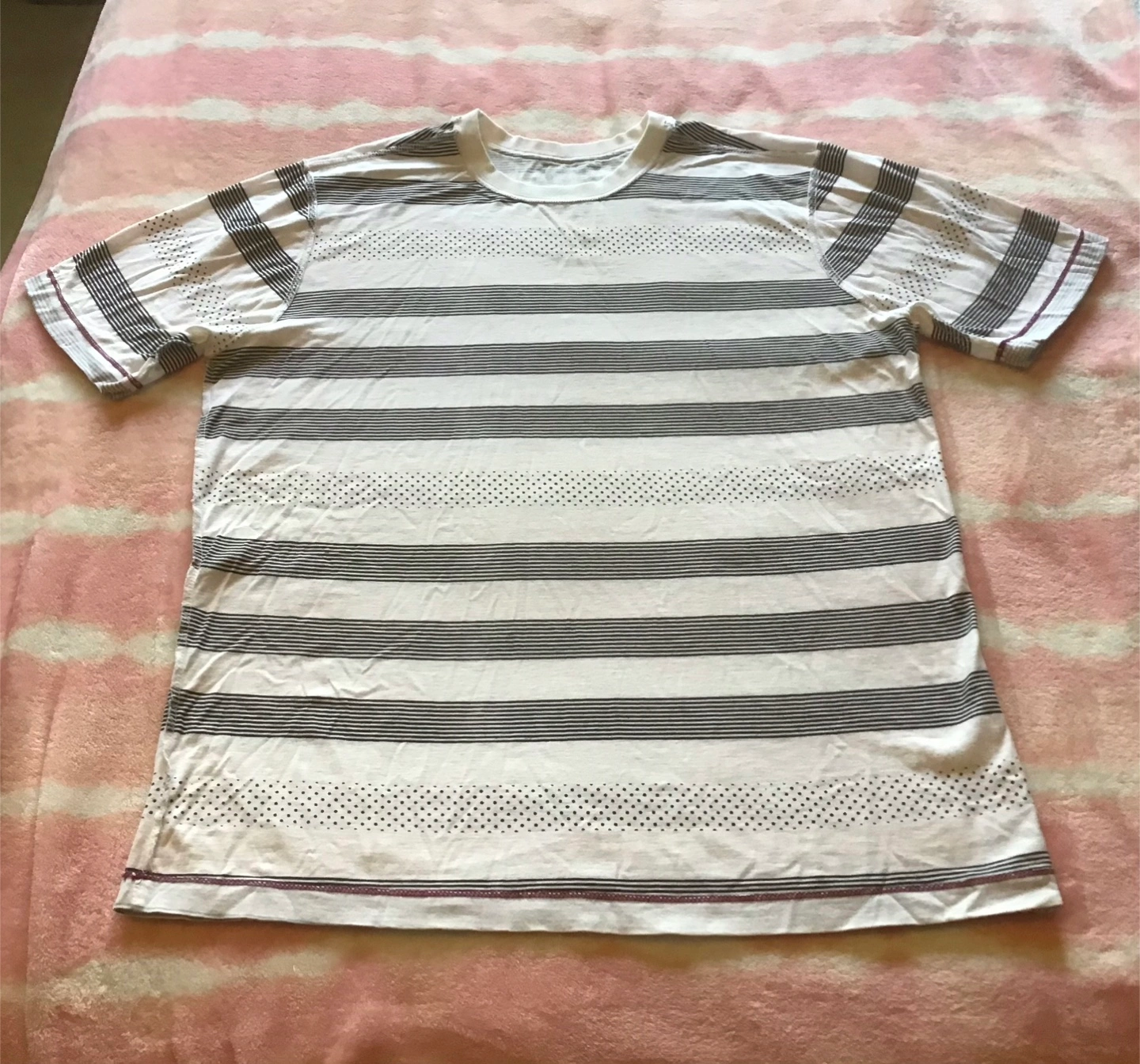Selling a Quiksilver t-shirt in a striped pattern. It's a size medium and in good condition. Perfect for casual wear! 🤩