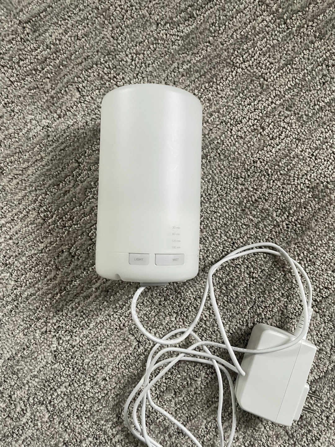 Selling a used aroma diffuser. It comes with its adapter. It has settings for light and mist, and you can set the mist timer for 30, 60, 120, or 180 minutes. It's in great condition and ready to use in your home!