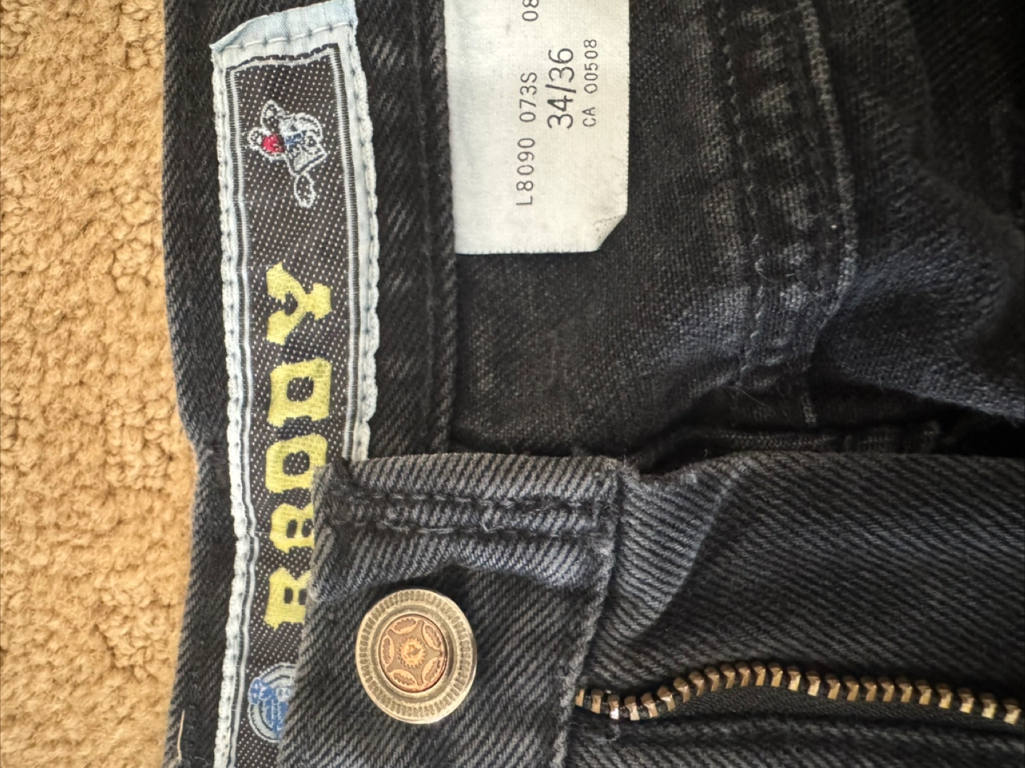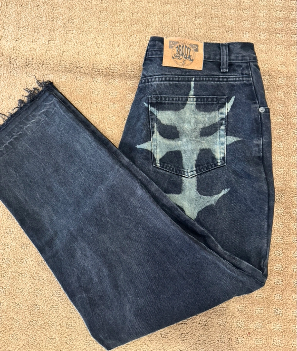 Selling a pair of Brody jeans in size 34/36. They have a cool design on the back pockets. Please take a look at the photos for details!