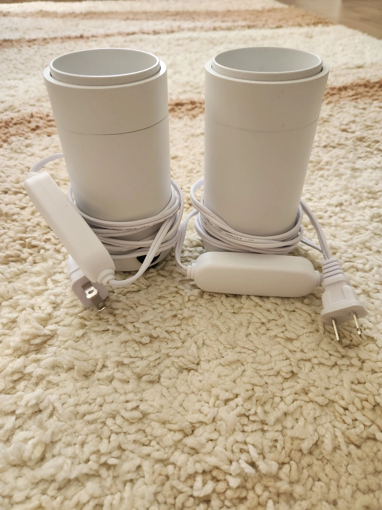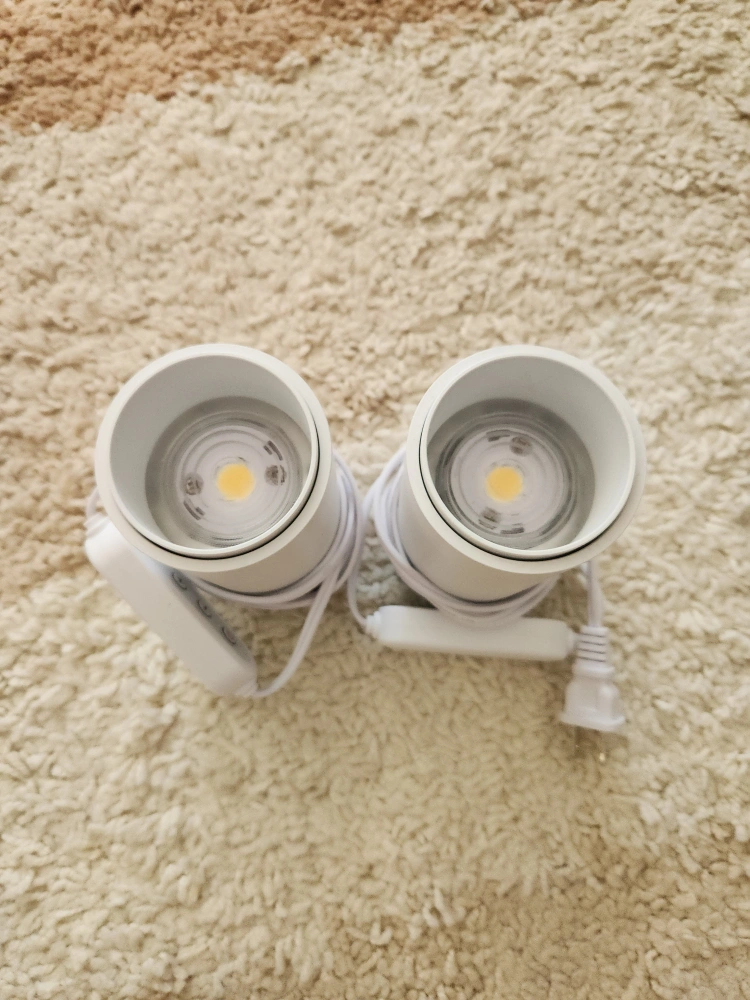 *both lights are not working* I'm not sure why, maybe the bulbs need changing but if you are interested in giving it a shot at fixing it, then go for it!. Pick up only at 280 Donlands Avenue. Giving away a pair of white LED spotlights. They have a switch to adjust the brightness and colour temperature. Great for adding some extra light to any room