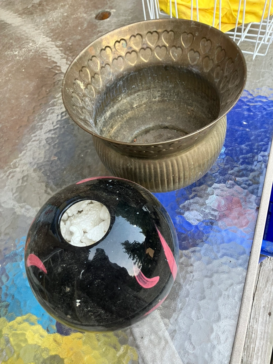 Selling a unique brass planter with a heart pattern around the rim, and a black vase with pink accents. Both are in good condition and would make a lovely addition to any home! P/up Thornhill, Elgin St south of Hwy 7.