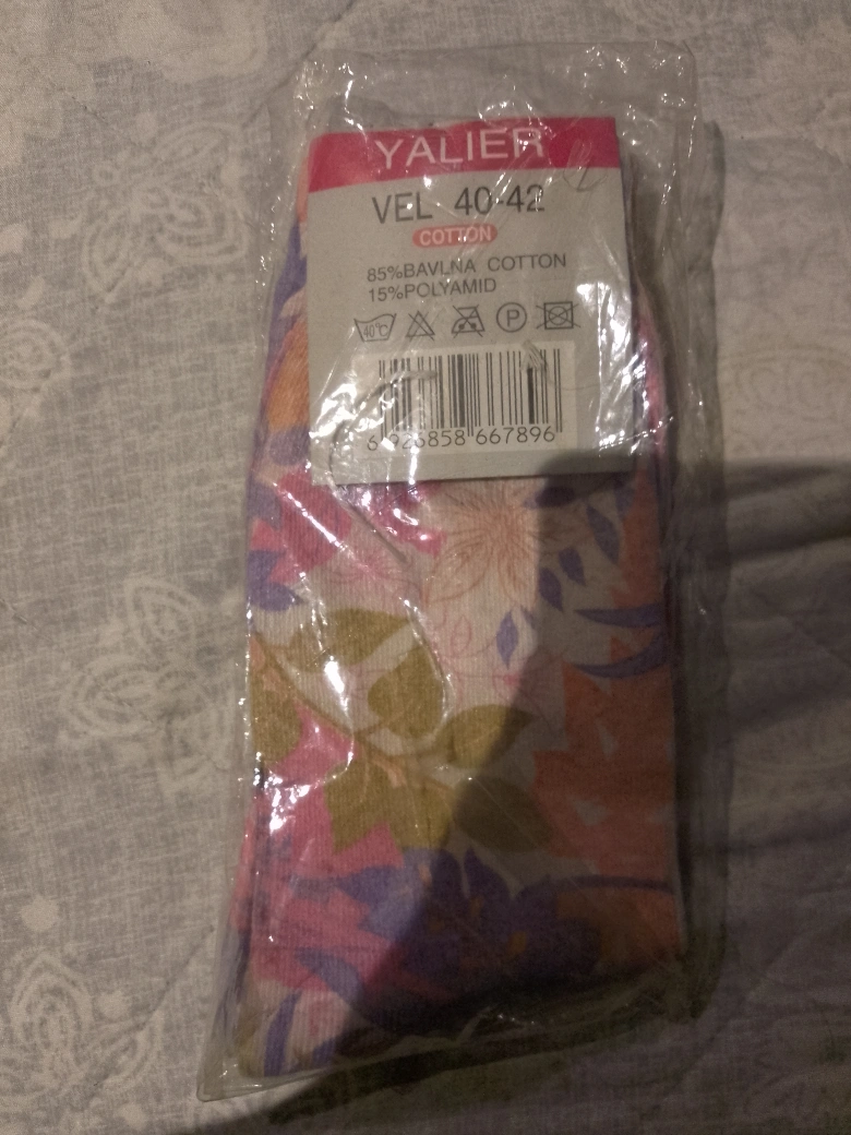 Here is brand new Yalier socks! They're size 40-42 and made of 85% cotton and 15% polyamid. The socks have a floral pattern, perfect for adding a touch of colour to your outfit. I cannot tell how long are they because I didnβt open the package. π I'm giving it away because I didnβt like this design.