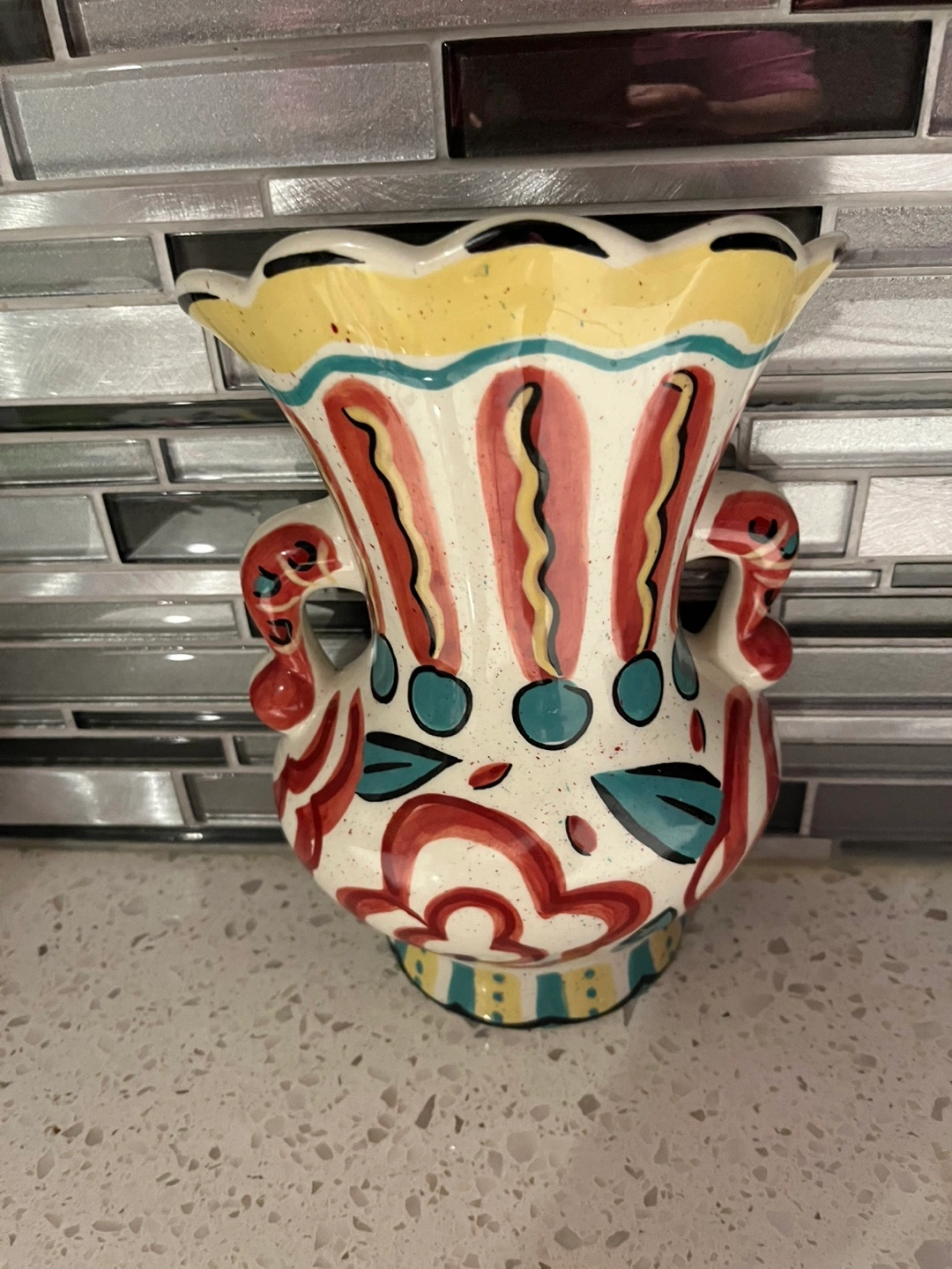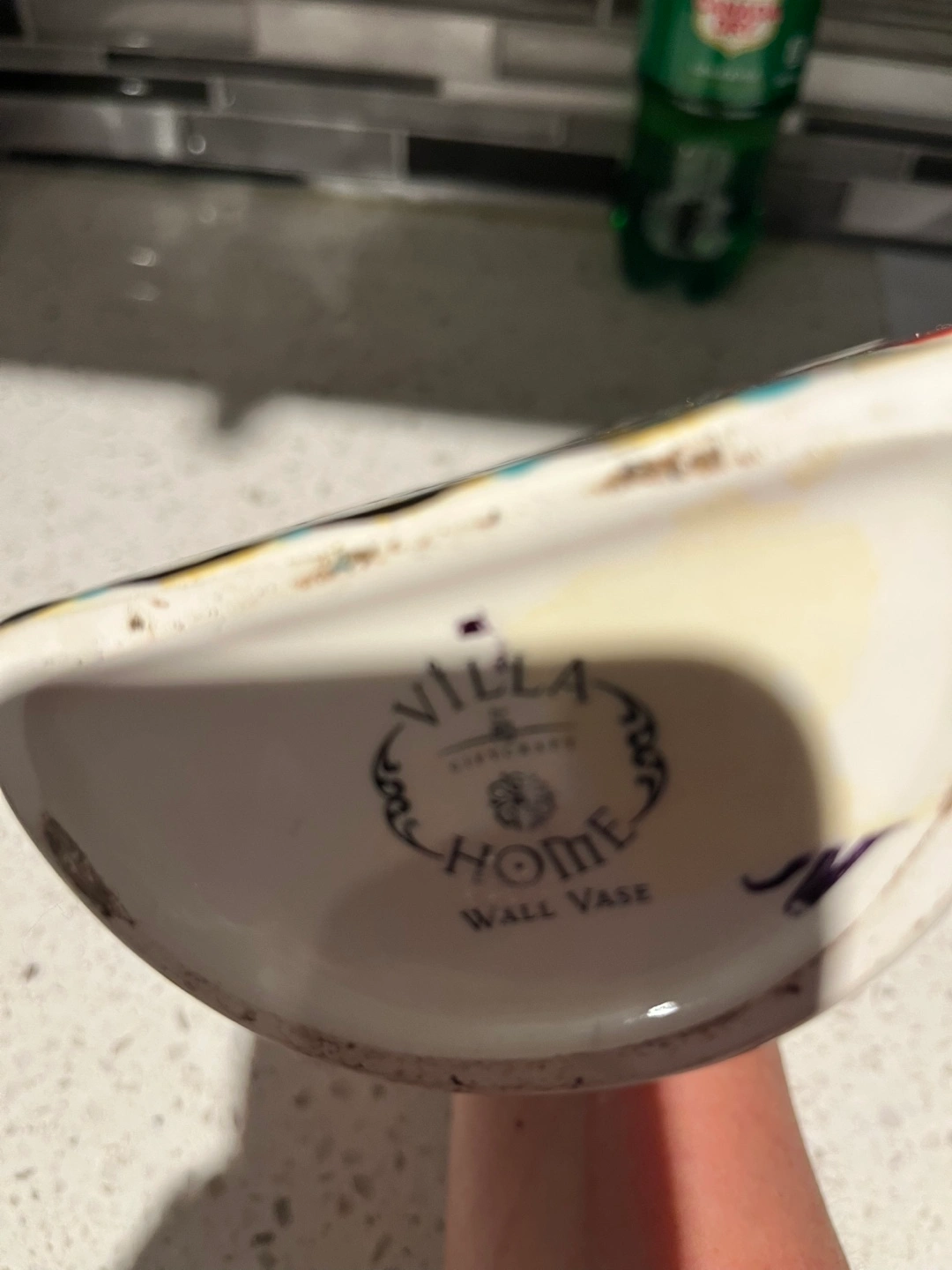 Selling a Villa Home wall vase. It has a unique and colourful design that would look great in any home. There are some minor signs of wear, no cracks