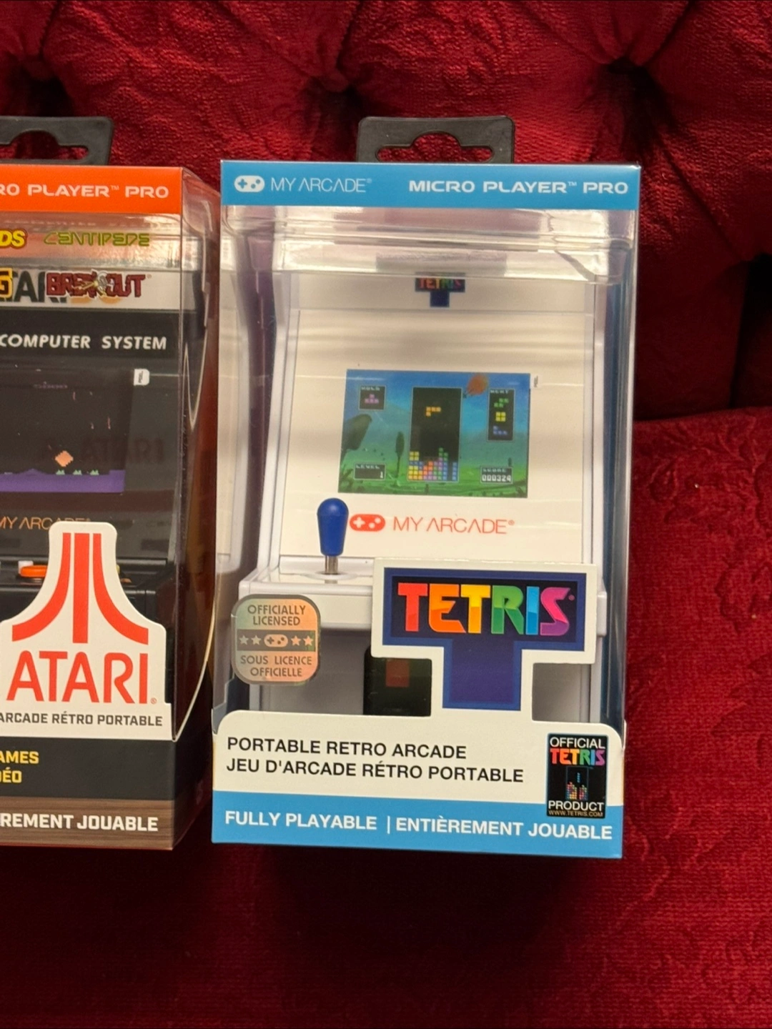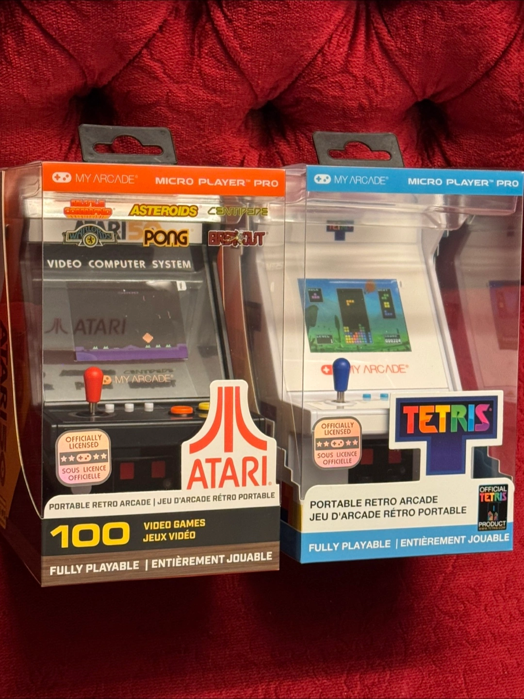 Selling two brand new My Arcade Micro Player Pro portable retro arcades! One is Atari with 100 video games, and the other is Tetris. Both are fully playable and come in their original packaging $25 each