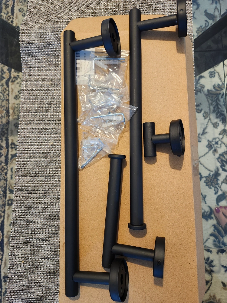 Selling a brand new, still-in-box black towel rail set of 4! It's a stylish and functional addition to any bathroom. This set includes everything you need for easy installation. Near Yonge and Sheppard North York