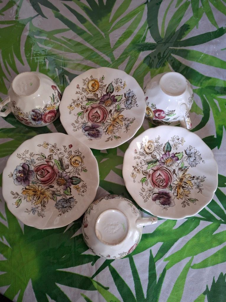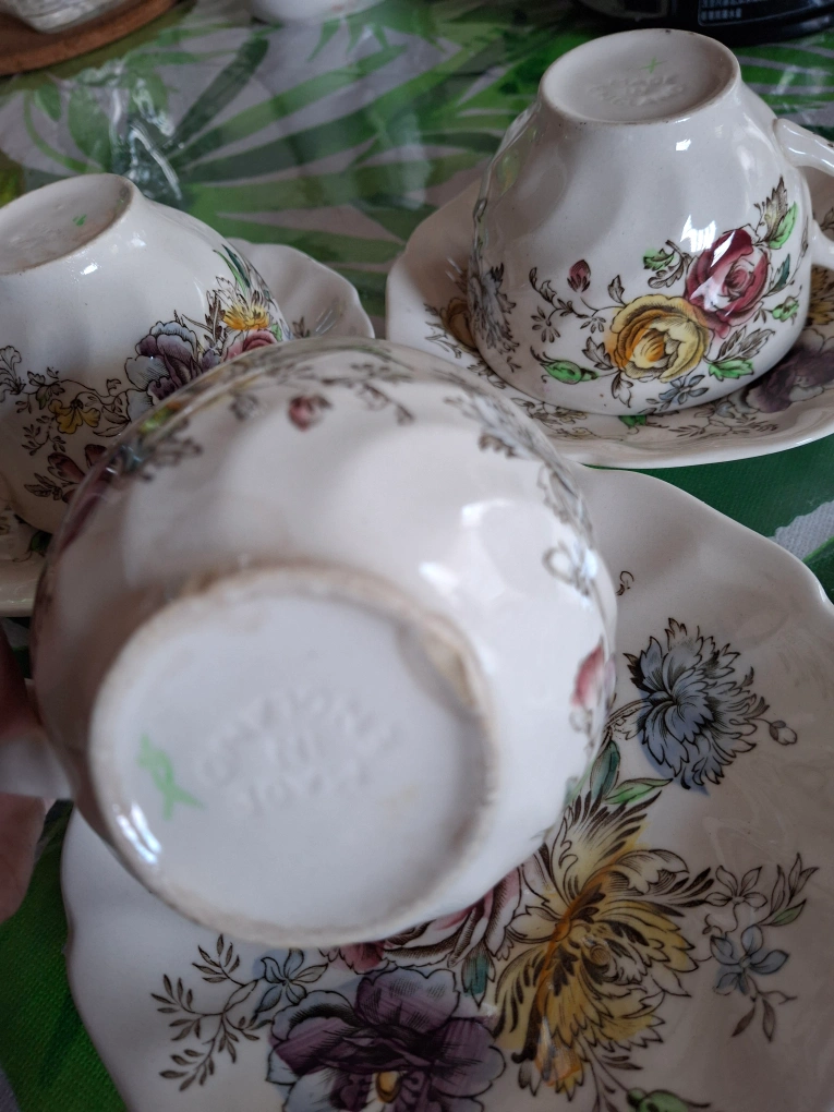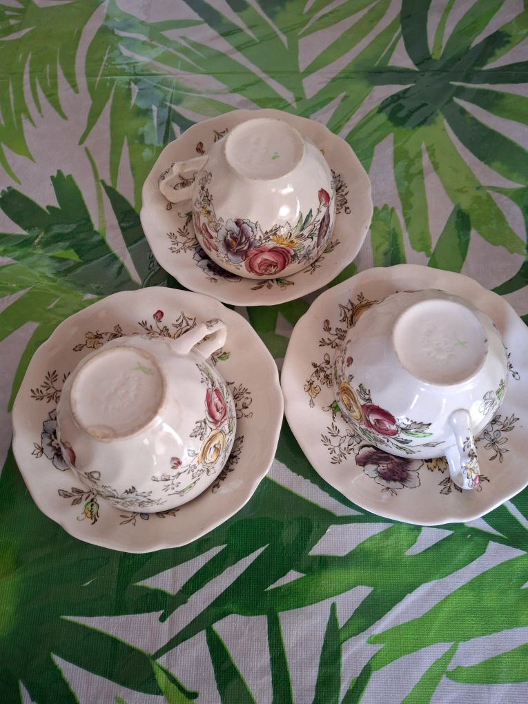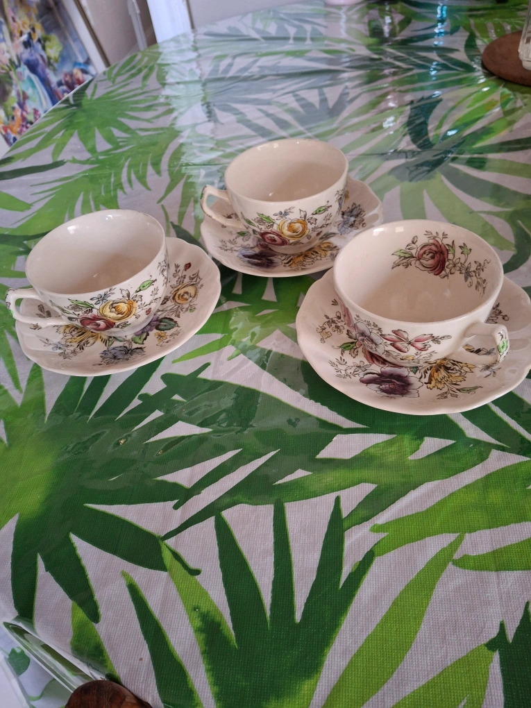 Selling a set of three Royal Albert tea cups and saucers. They feature a beautiful floral design. Perfect for tea time or as a decorative set!