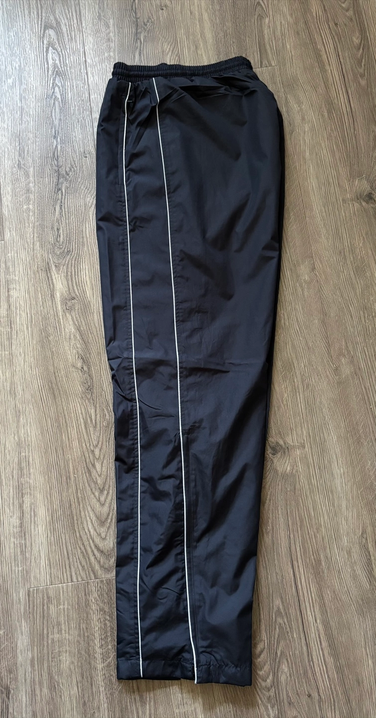 A lightweight pant for recreational weather protection outdoor sport events endeavors. Have 2 zip Secure pockets elastic waist with drawstring for a customized fit. 15” Side Zip leg Hem. 2 side White stripes. Made In durable, lightweight, and breathable material that dries at a speedy rate. The color is Midnight Navy. Ideal For: Low sweat recreation blocking out the breeze, travel, bike rides, dog walking, rain, hiking.