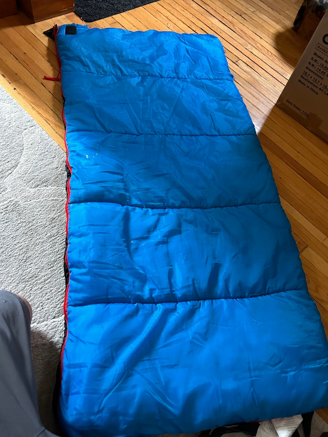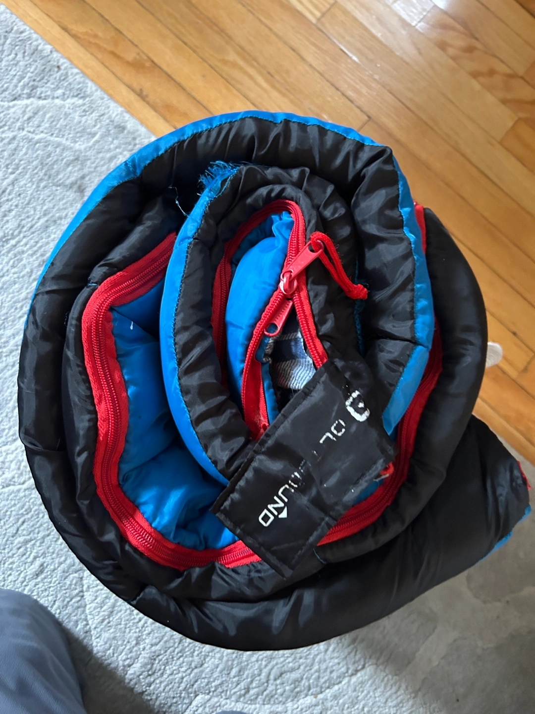 Youth kid child sleeping bag 28" x 58" overnight summer camping sleepover zipper Donlands O'Connor 5.00 Compact and has built in straps Lightweight Nice bag with flannel inside Zippers work well 28" x 58" Neutral so suitable boy or girl preteen or child Good to temps 6 Celsius or 43 Fahrenheit so great for spring to fall including summer Good used condition I only see one small unraveling Flexible re pickup Elmsdale Road M4J 3M3 Donlands O'Connor East York Don Mills south exit off DVP