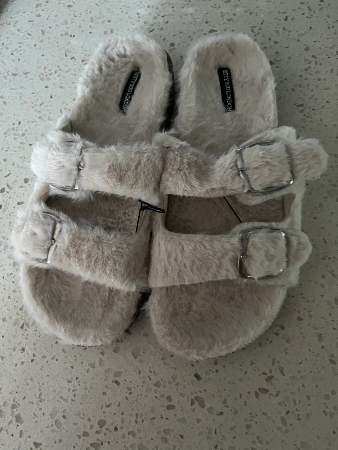 These fuzzy slippers from Pretty You London are super comfy and stylish! They're in great condition and ready for a new home. Perfect for keeping your feet warm and cozy around the house
