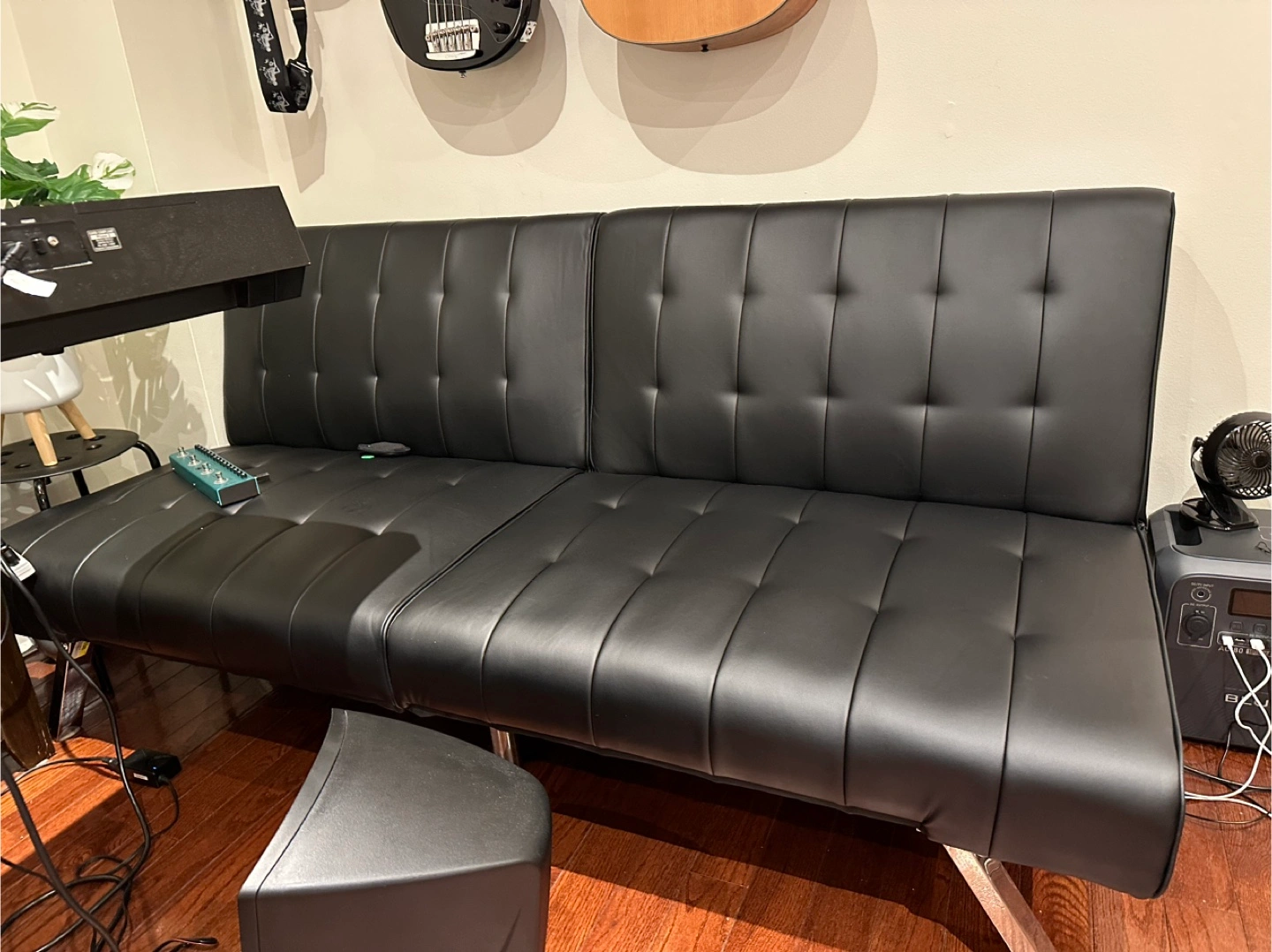 Selling a black leather that easily converts into a sofa bed. It's in great shape and ready for a new home. Perfect for a living room or guest room! for sale for pick up first come first serve cash only