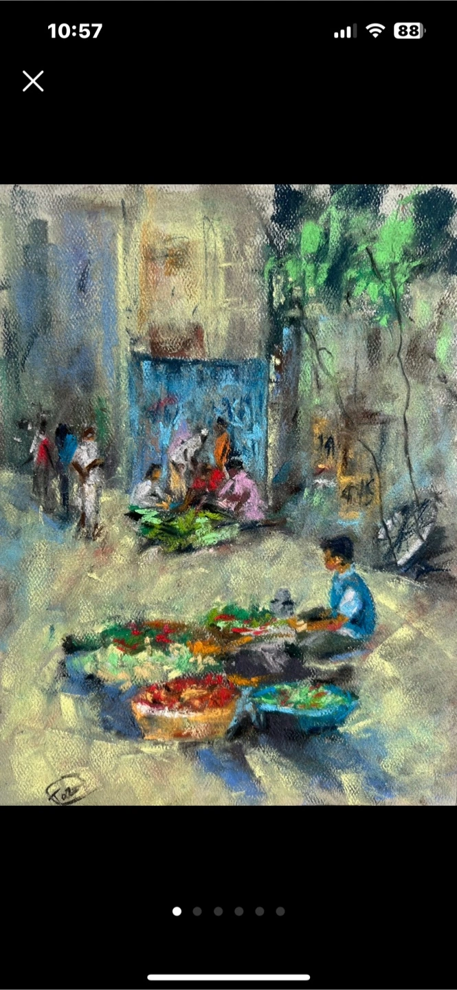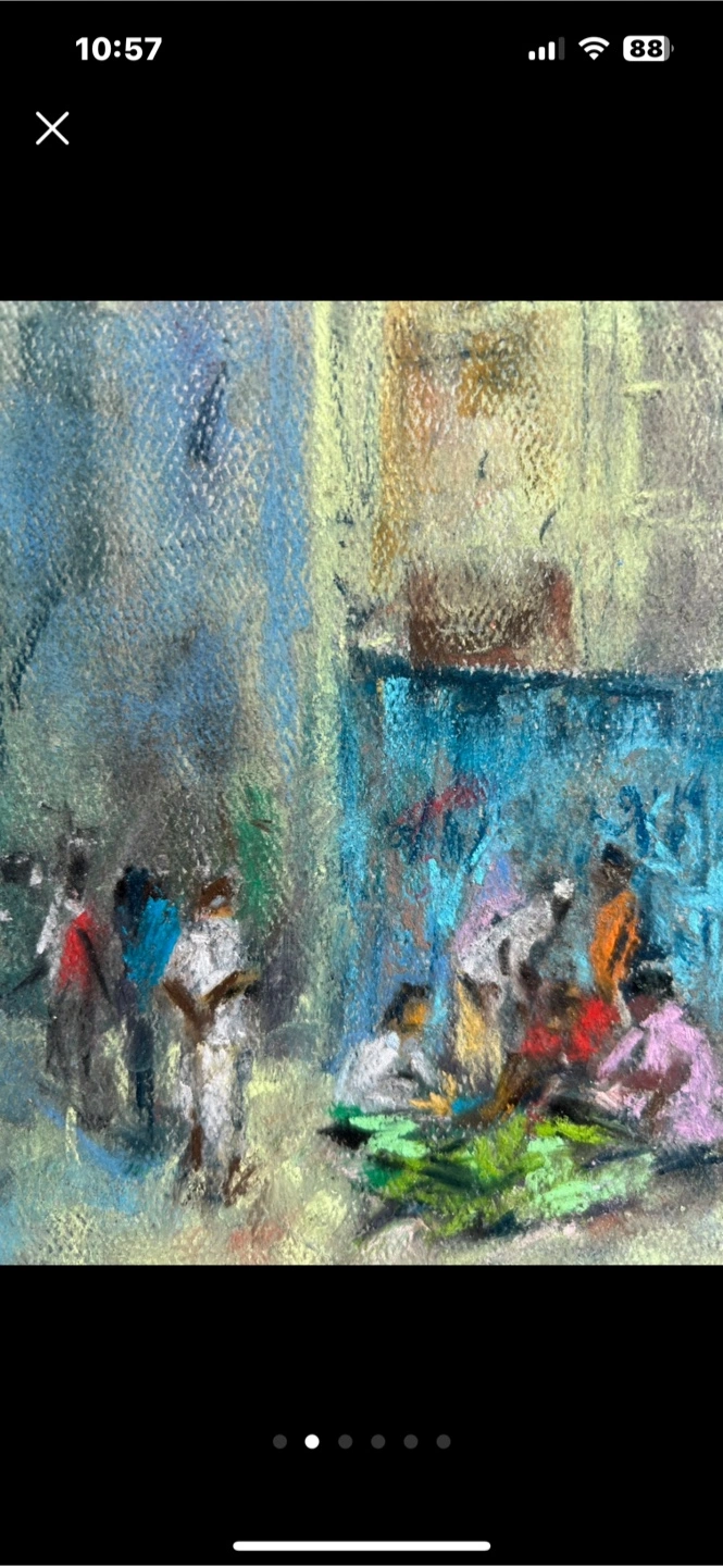 “Morning Vendors” 9 x 12 inches Pastel on pastel mat This is an original pastel painting. It will be shipped/handed over to you unframed, protected with glassine paper between two boards. Frame is not included, but I will supply framing suggestions if needed. Pickup in Surrey near King George station or message me for shipping rates via Canada Post. ——— Purchasing this piece helps support my journey as an artist, allowing me to continue creating more inspired work.