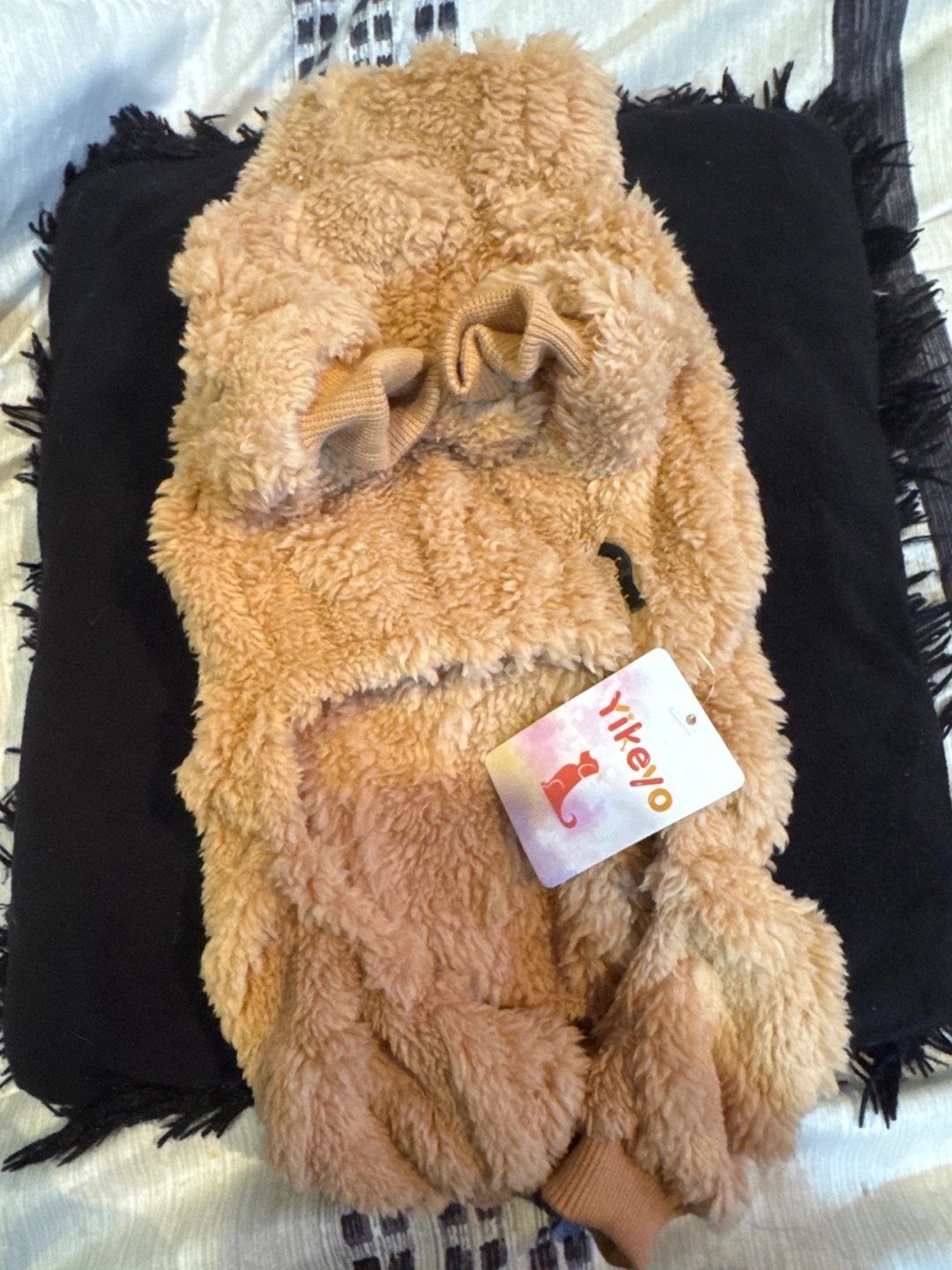 Selling a brand new size xs .Yikeyo dog winter coat! It's a cozy and warm option for your furry friend during the colder months. The coat has a soft, plush texture and is designed to keep your dog comfortable and stylish.