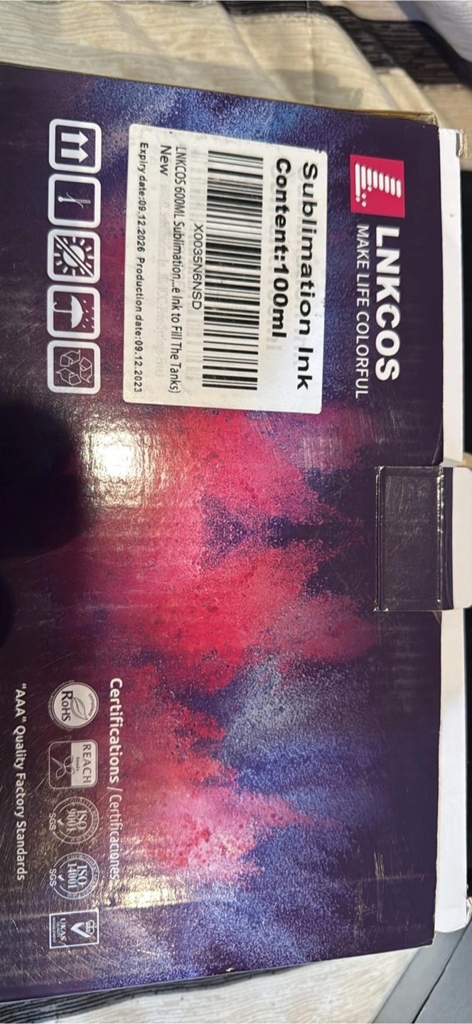 I'm selling a new set of LNKCOS sublimation ink. Each bottle contains 100ml of ink and the expiry date is December 05, 2026. Make life colourful with this set!