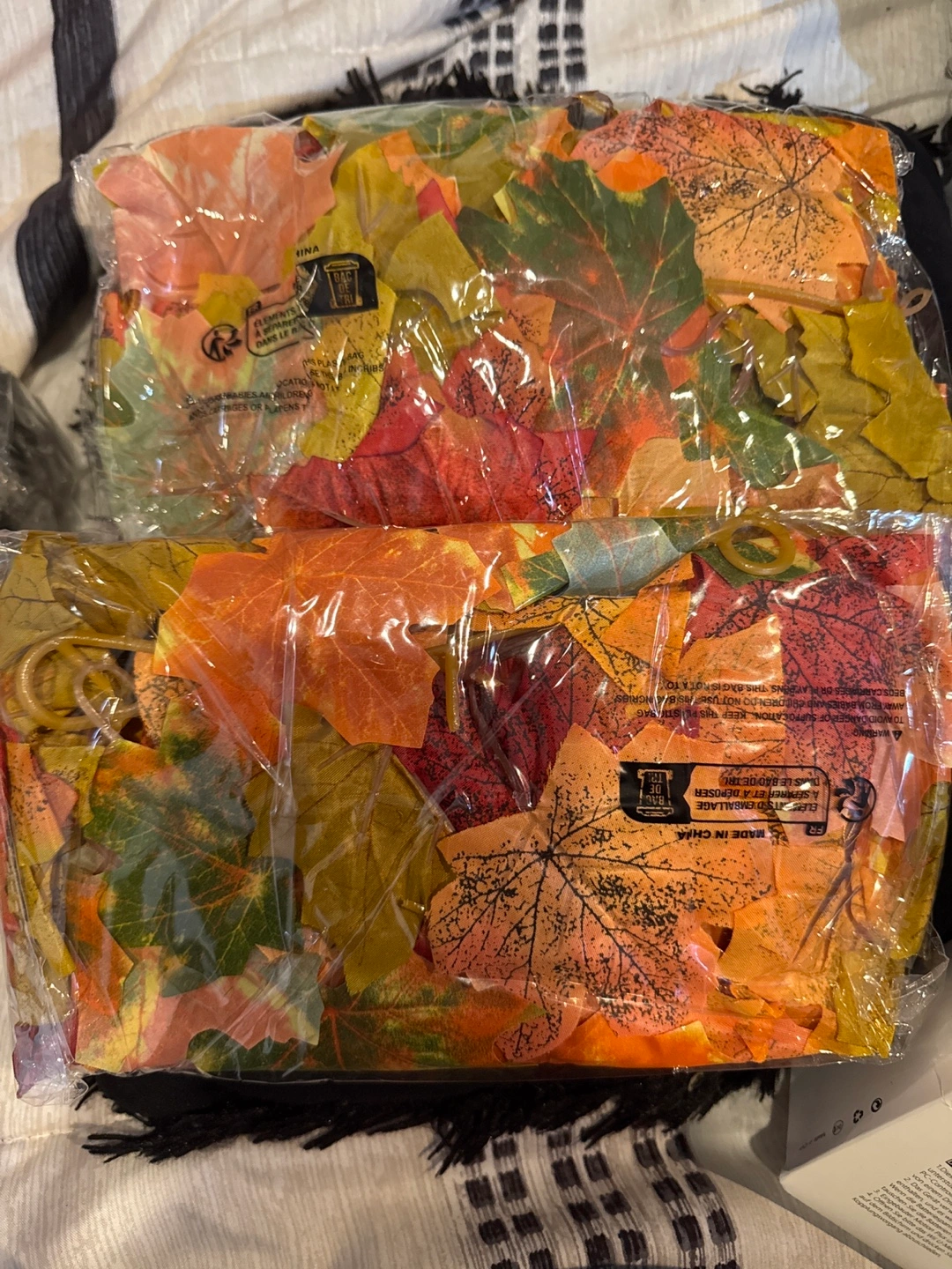 Brand new fall leaves garland still in its original packaging! Perfect for adding a touch of autumn to your home decor. The package includes a garland of colourful fall leaves. I have 2