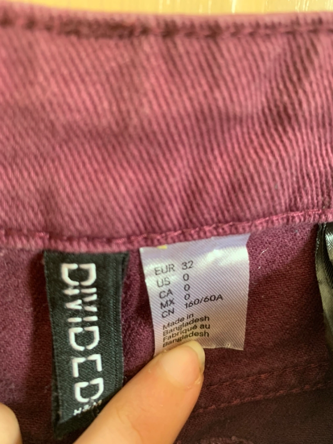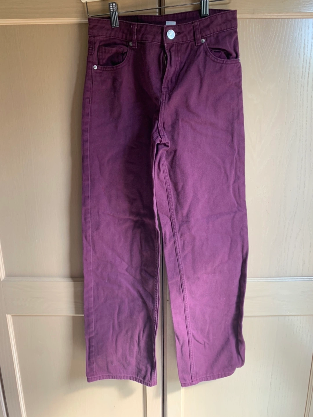 Selling a pair of Divided jeans in a nice burgundy colour. They are a size 0. hardly worn in great condition porch pickup near erin mills town center