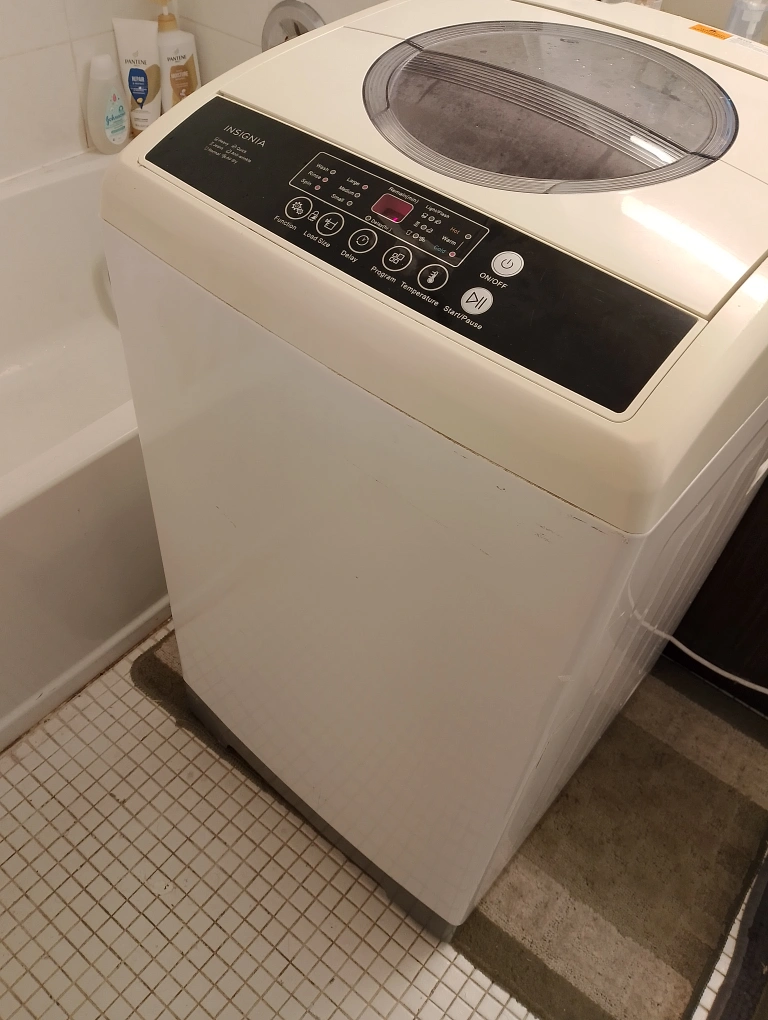 Selling an Insignia portable washing machine. It's in great working condition and perfect for apartments or small spaces. Features include multiple wash cycles and load size options. Easy to use with a simple control panel.
