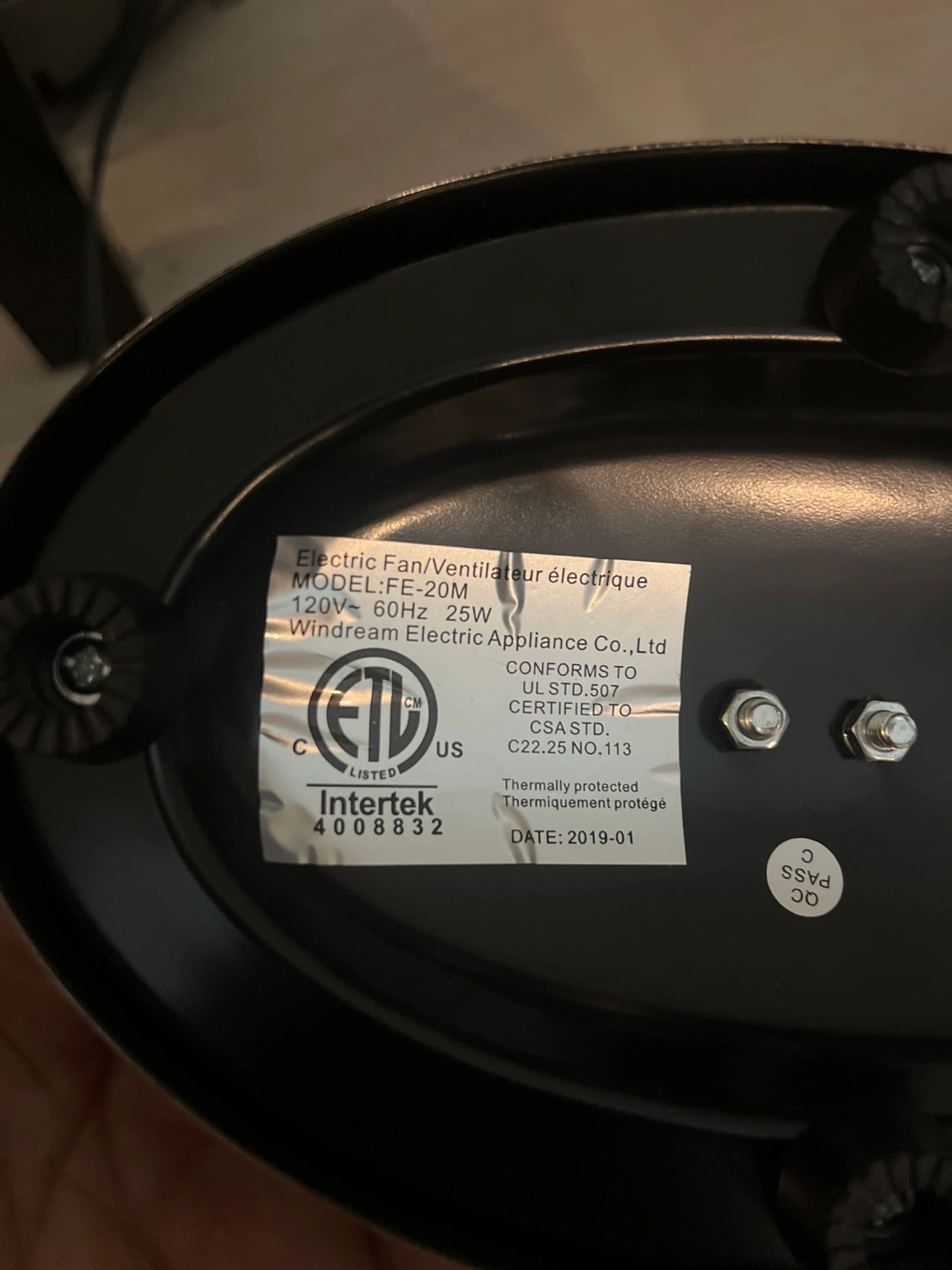 Selling a Windream Electric Fan, model FE-20M. It's in great shape and ready to keep you cool! It operates at 120V, 60Hz, and 25W.