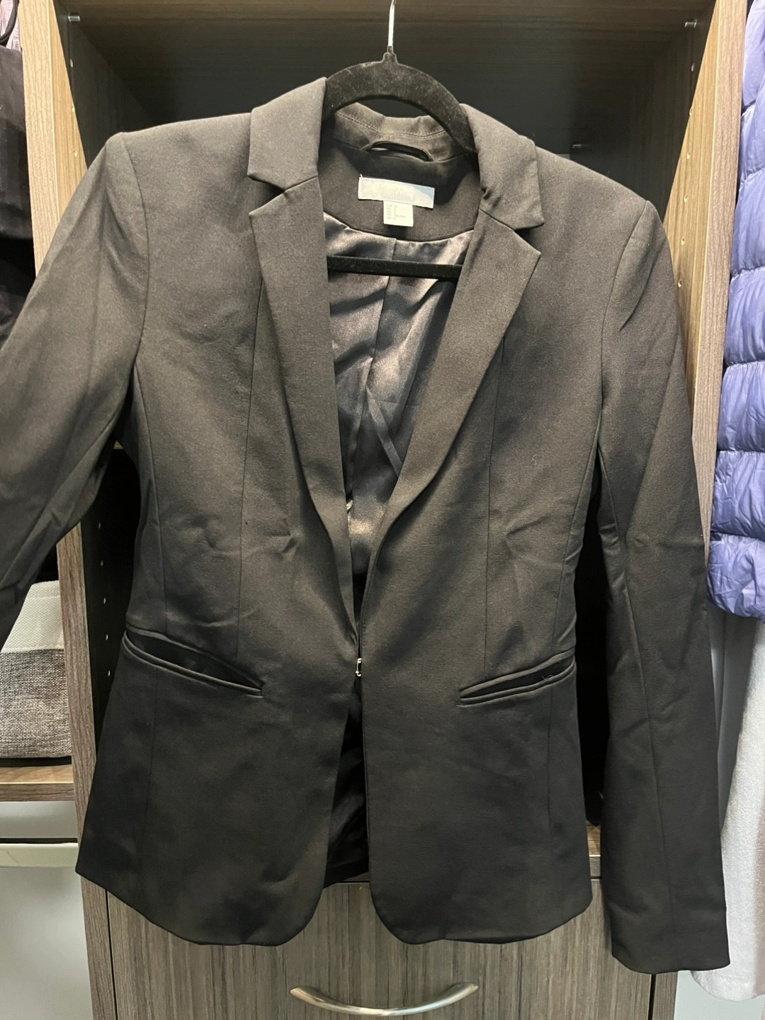 Selling a gently used H&M black blazer in size 2. It's in great condition and perfect for adding a touch of sophistication to any outfit! The blazer is a classic style with cinched waist that can be dressed up or down, making it a versatile addition to your wardrobe