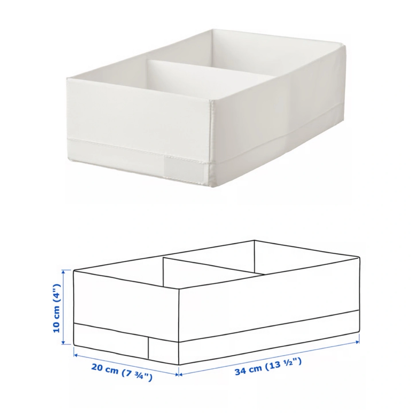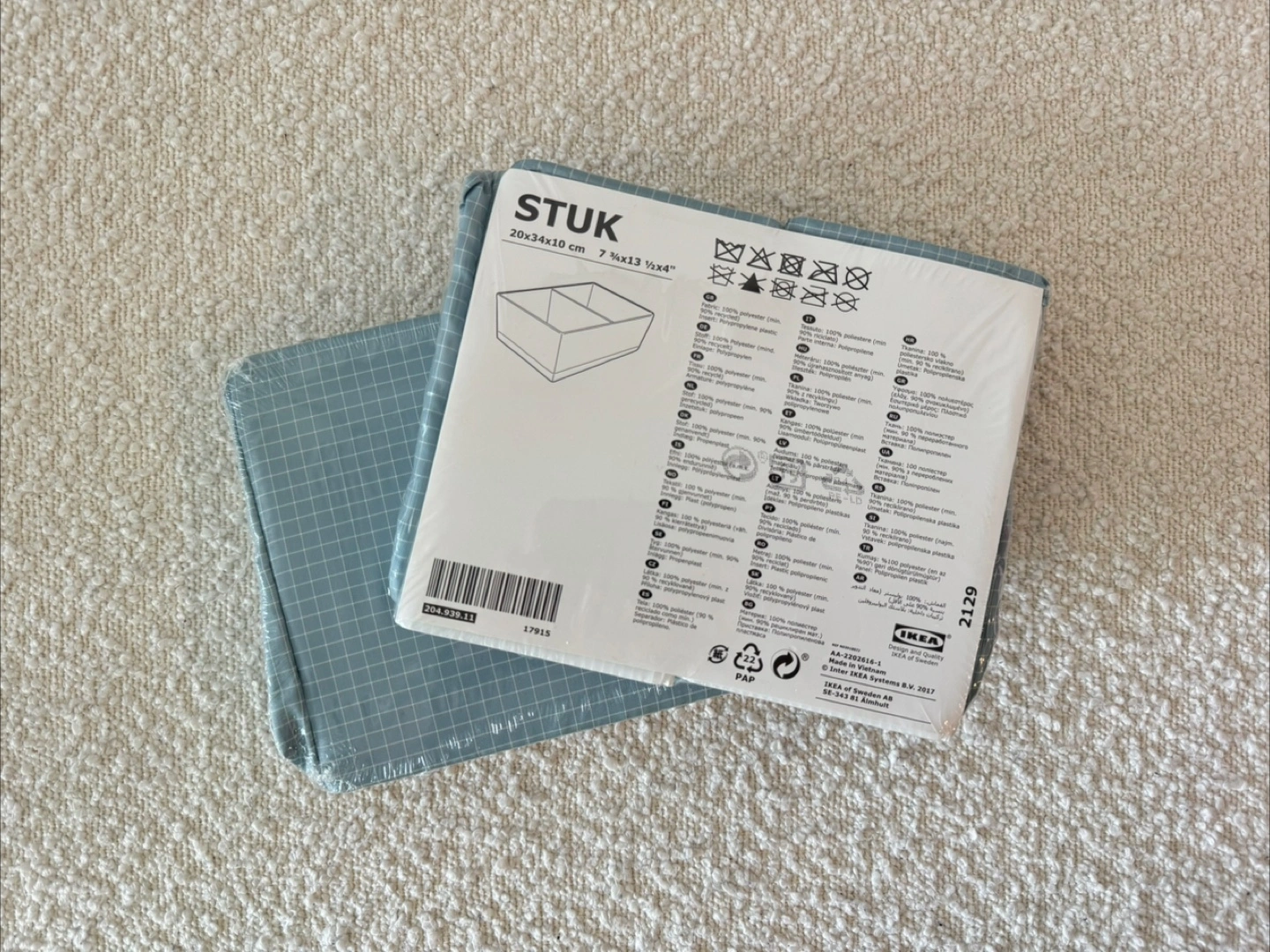 3 IKEA STUK box with compartments! - 2 sealed and 1 out of the plastic (like new!) - blue - perfect for organizing your drawers or shelves. The dimensions are 20x34x10 cm (7 ¾ x 13 ½ x 4)