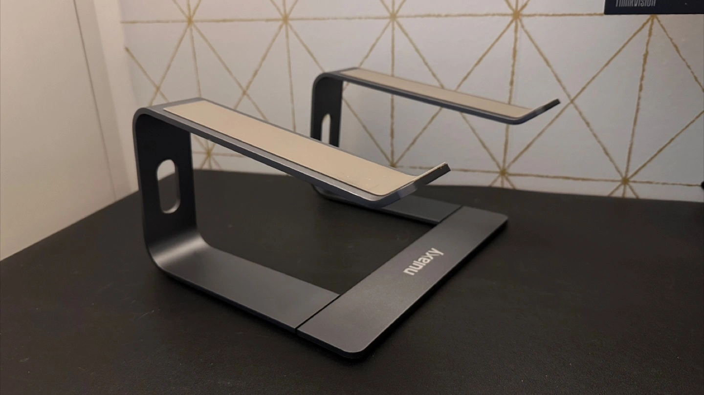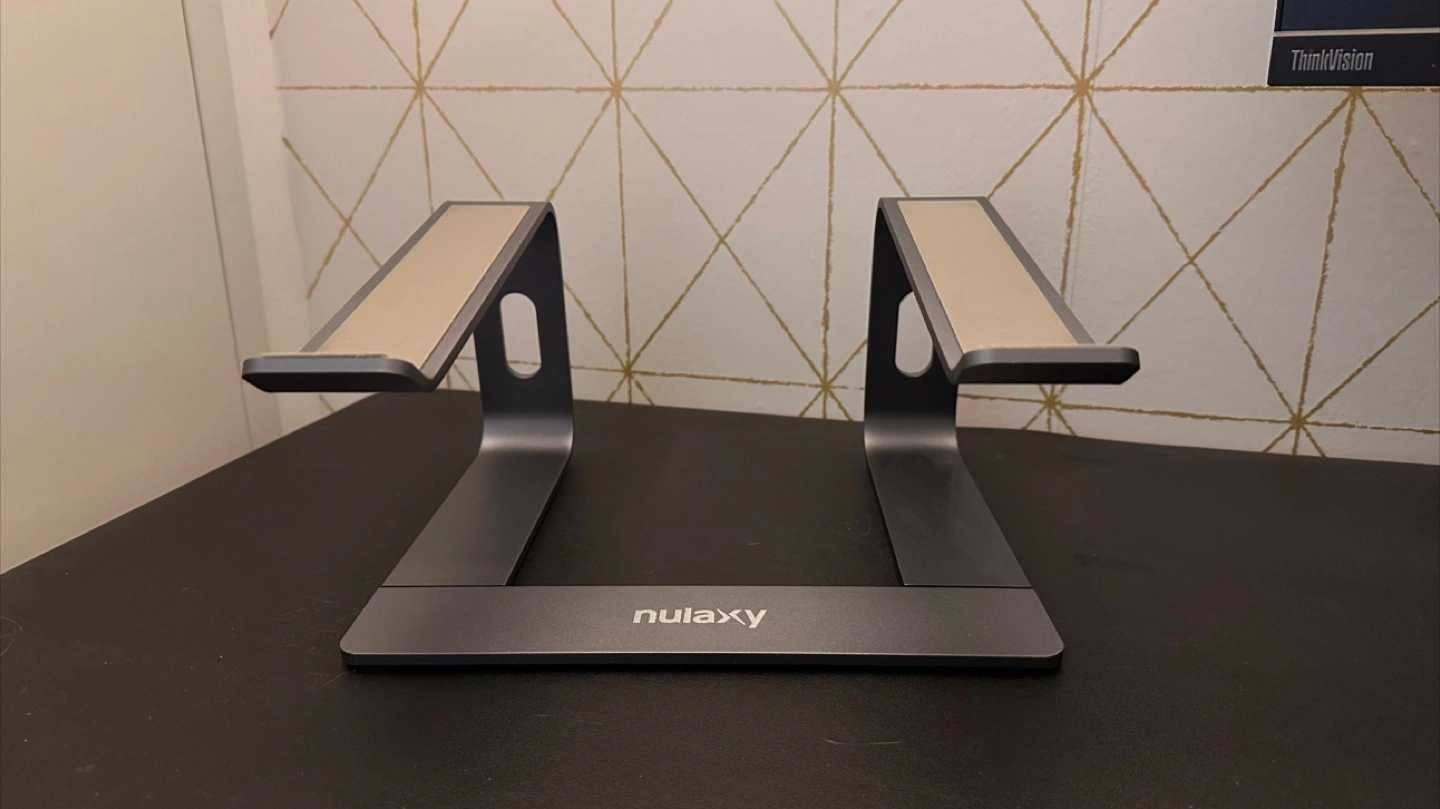 Nulaxy laptop stand in great condition. Elevates your laptop for better ergonomics and helps with cooling. Compatible with all laptops from 10-15.6 inches and has large rubber pads on the surface to hold laptop steady. Perfect for your home office setup. Product Dimensions: 29.21 x 21.08 x 5.84 cm; 800 g Pick up at Front St and Sherbourne St. Cash only please.