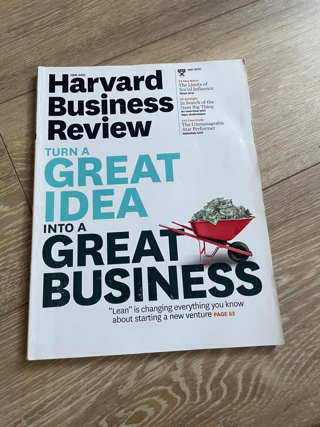 Selling a May 2013 edition of the Harvard Business Review magazine! The cover story is about turning a great idea into a great business, focusing on how 'Lean' is changing everything you know about starting a new venture