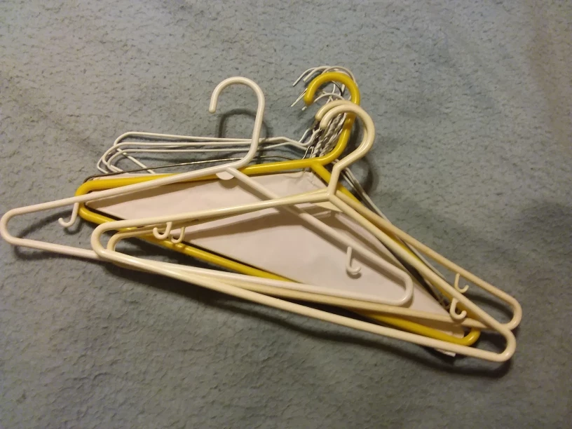 I have a green reusable bag from Dollarama that says "I'm reusable" and some clothes hangers πππ There's more hangers coming, will be added when picked up. π No limit on asking for π items. Pickup today only until 9 pm.