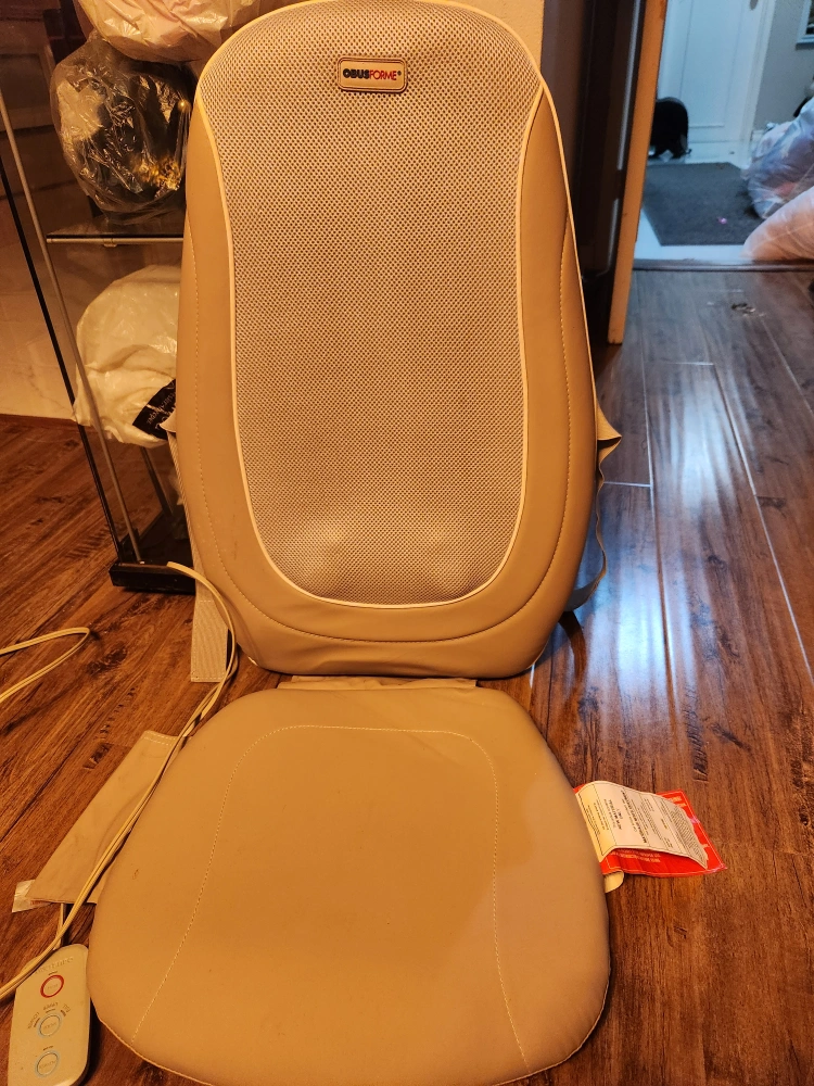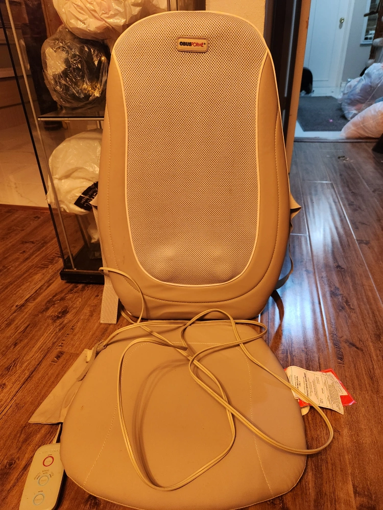 Selling an ObusForme massage seat! It comes with a remote to control the heat and massage settings. Perfect for relaxing after a long day.