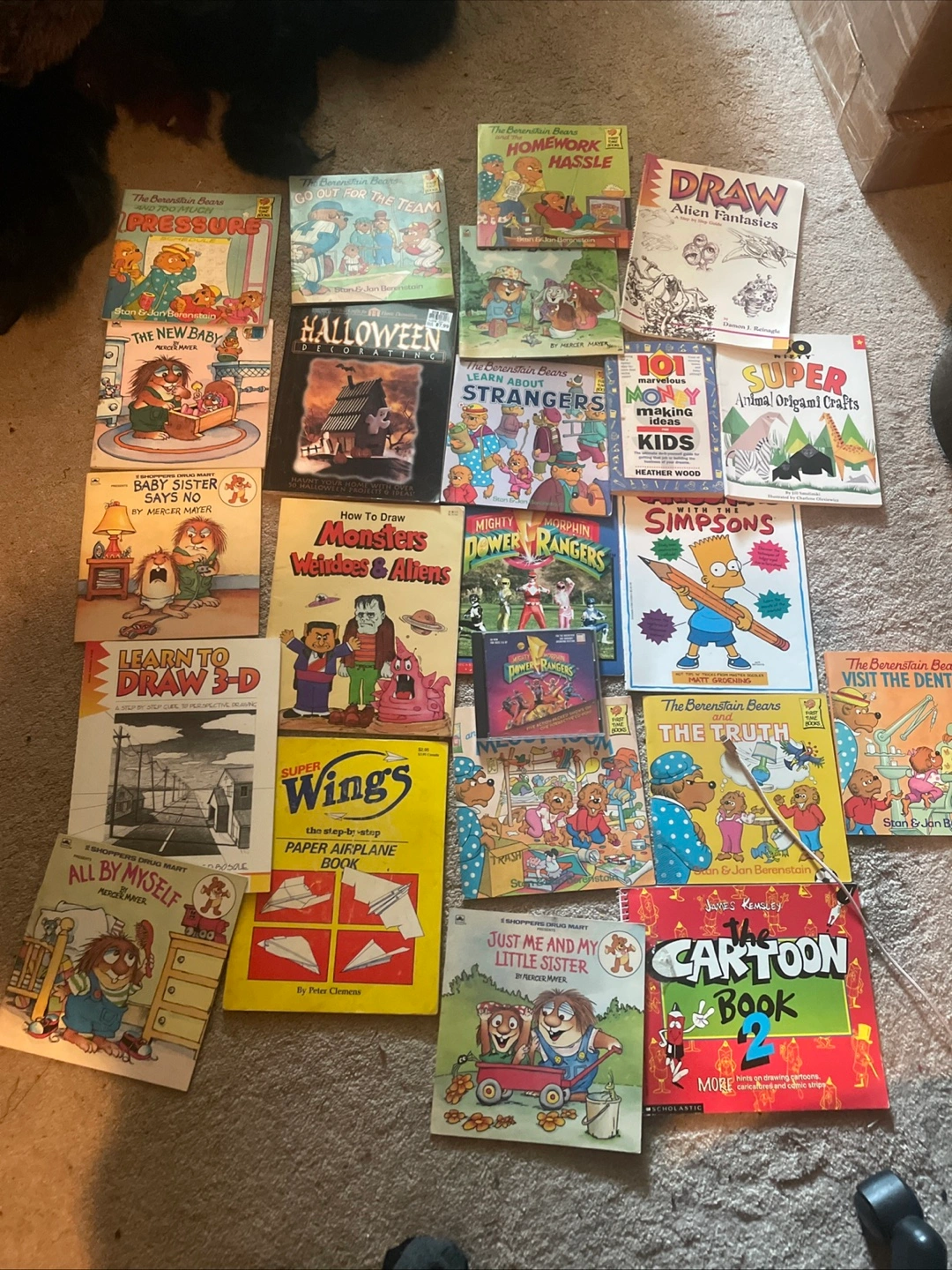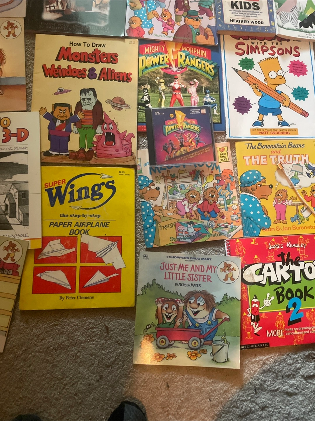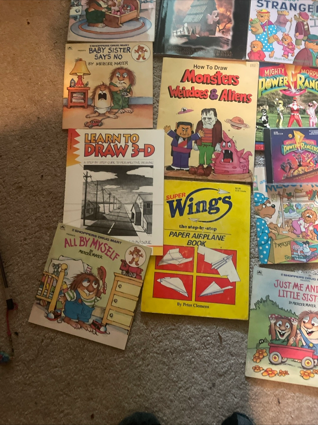 Selling a collection of kids' books! There are titles like Mercer Mayer's "All By Myself" and "Just Me and My Little Sister", plus "The Berenstain Bears and the Truth". Also included are drawing books like "How to Draw Monsters Weirdoes & Aliens" and "Learn to Draw 3-D"! A great mix for young readers and artists