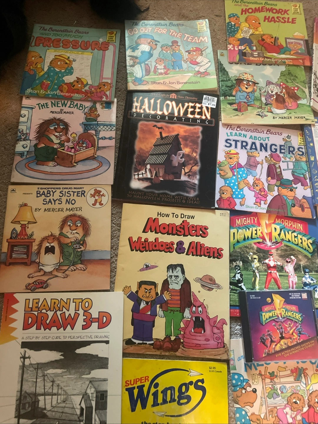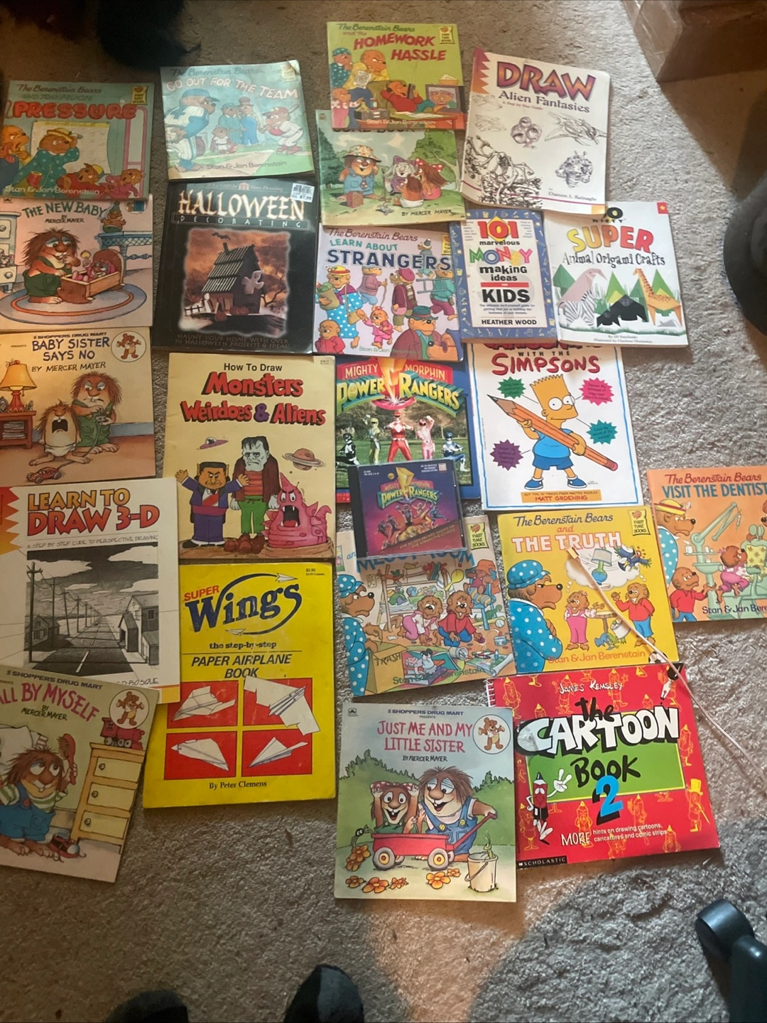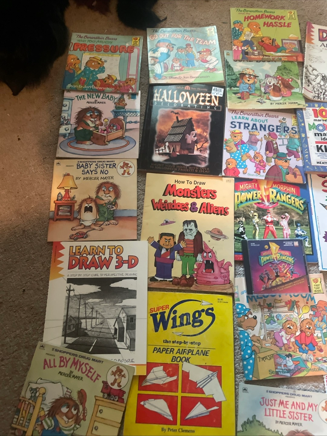 Selling a collection of kids' books! There are titles like Mercer Mayer's "All By Myself" and "Just Me and My Little Sister", plus "The Berenstain Bears and the Truth". Also included are drawing books like "How to Draw Monsters Weirdoes & Aliens" and "Learn to Draw 3-D"! A great mix for young readers and artists